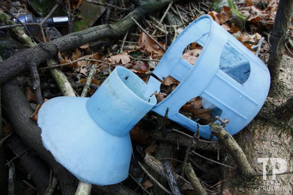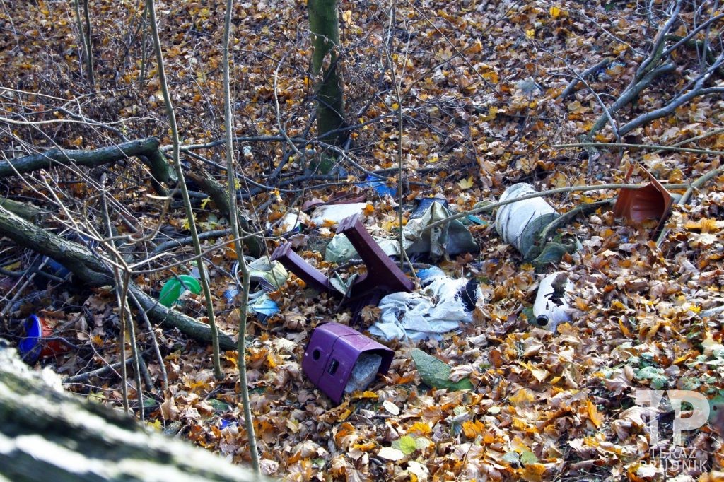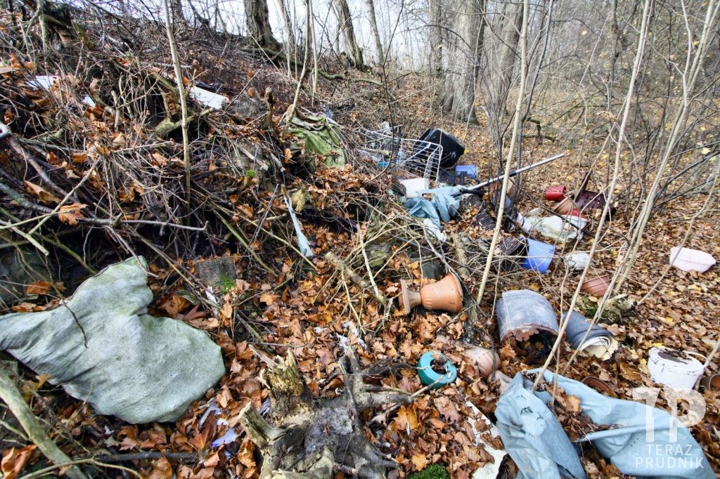 Niedługo przed zgłoszeniem na teren parku podrzucono nową, znaczną ilość śmieci. Trafiły tam m.in.: zniszczony fotel biurowy, pojemniki po farbie, pędzle, poidło dla gołębi, sporo przedmiotów ogrodniczych (doniczki po sadzonkach), stare naczynia stołowe, butelki, resztki zielone, zniszczona dekoracja ogrodowa i zużyty, drobny sprzęt domowy. Były też opakowania po pieluchach dla dorosłych, co znaczy, że właściciel opiekuje się lub do niedawna opiekował się osobą starszą, która być może niedawno zmarła.