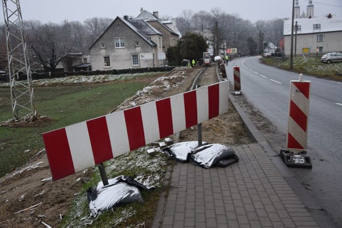 Odbudowywane są tam zniszczone w czasie powodzi chodnik oraz wjazdy na posesje. Z tego względu szczególną ostrożność muszą zachować zarówno kierujący pojazdami jak i piesi poruszający się tym odcinkiem drogi.