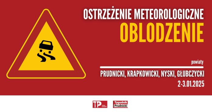 Alert 1. stopnia dotyczy m.in. powiatów graniczących z Rep. Czeską: prudnickiego, głubczyckiego, nyskiego oraz krapkowickiego. Ostrzeżenie obowiązuje do godz. 10.00 3 stycznia. O godz. 21.30 temperatura powietrza w Prudniku wynosiła -0,9 st. C. Piątek będzie chłodnym dniem, temperatura będzie oscylować wokół 0/+1 st. C, ale zza chmur ma wyglądać słońce. Opadów nie będzie lub będą niewielkie. Przed oblodzeniem ostrzegają też służby Rep. Czeskiej.