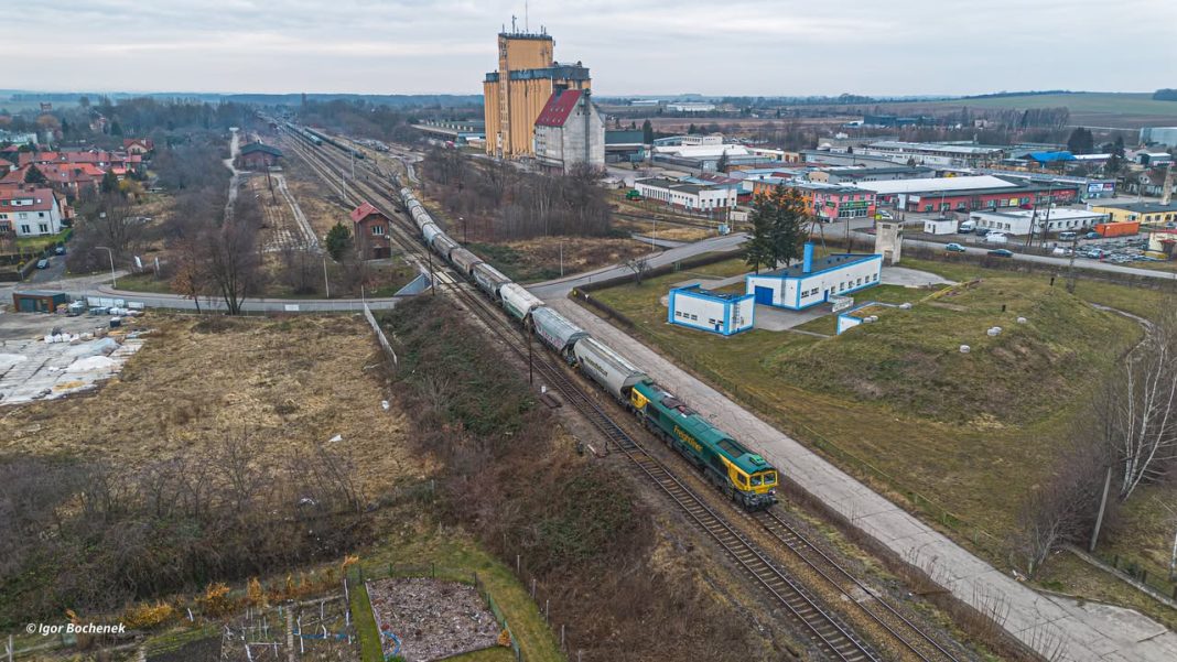 W czwartek, 13 lutego, na stację kolejową w Prudniku zawitała lokomotywa spalinowa 513-02 składem zbożowym, obecnie użytkowana przez spółkę Frieghtliner PL. Autor fotografii, Igor Bochenek, pisze, że po raz ostatni taki właśnie skład zawitał do miasta u stóp Gór Opawskich mniej więcej rok temu.