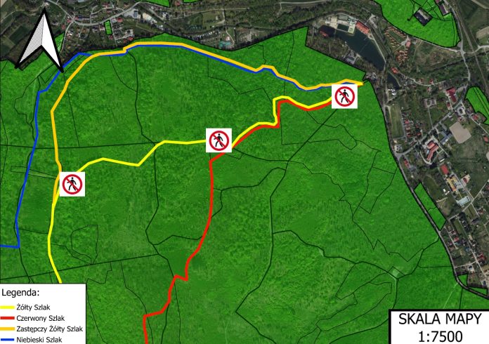 Wyłączony będzie odcinek żółtego szlaku kąpieliska w Pokrzywnej do skoczni narciarskiej przy drodze saperskiej. Zastępczą trasą na czas prac będzie szlak niebieski oraz – w dalszej części – droga saperska.