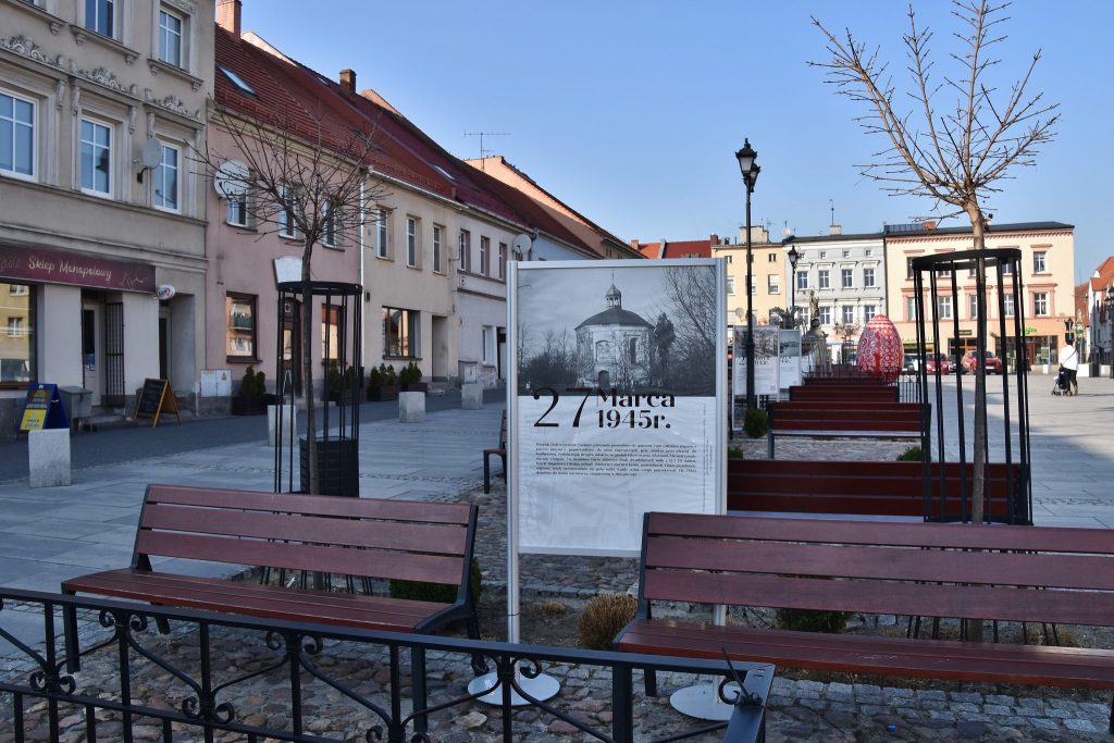 Blok uroczystości rozpoczął się od otwarcia wystawy plansz z archiwalnymi fotografiami i fragmentami pamiętnika Josefa Matuschki. Znalazły się tam zdjęcia już nieistniejących, zniszczonych wiosną 1945 roku budynków, w tym unikatowe, przedstawiające wkraczające na rynek wojska sowieckie i płonące domy.