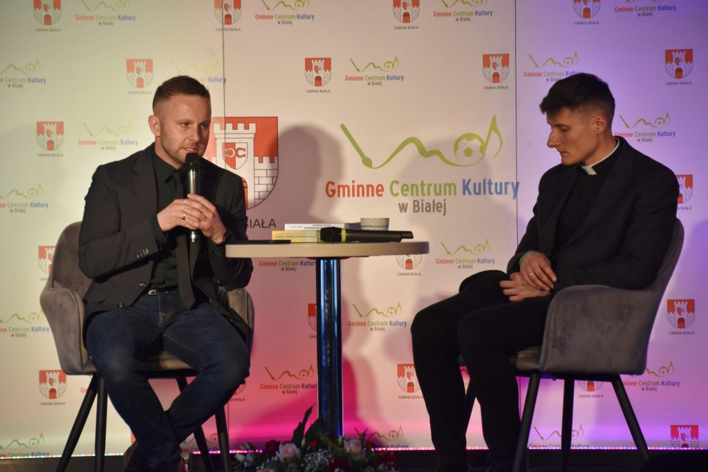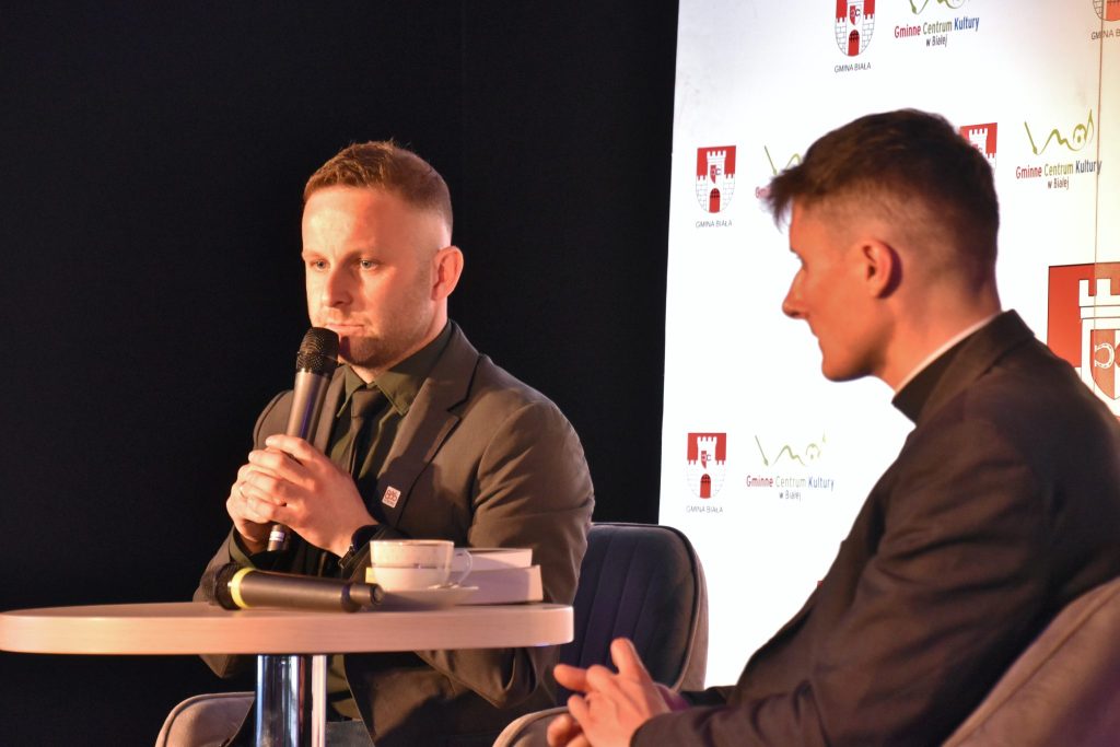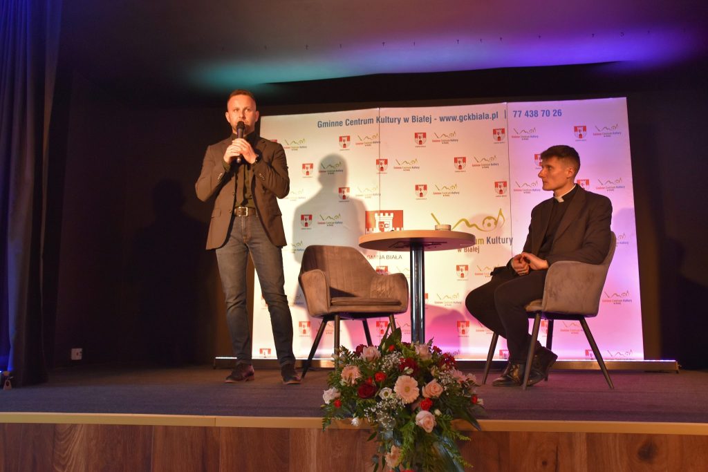 Kolejnym punktem programu była prelekcja o przebiegu działań wojennych w Białej Patryka Bani i ks. Marka Dzionego w Gminnym Centrum Kultury, poprzedzona krótkim wystąpieniem burmistrza Edwarda Plicki: – W chwilach, gdy jest bezprawie, w ludziach wyzwalają się najgorsze, zwierzęce instynkty i takie sytuacje miały tutaj miejsce. To było jedno z najgorszych wydarzeń, które dotknęły nasze społeczeństwo. (…) Niech ta historia czegoś nas nauczy, że wolność i bezpieczeństwo są najważniejsze, a o trudnej historii jedynie mówmy, ale jej nie przeżywajmy.