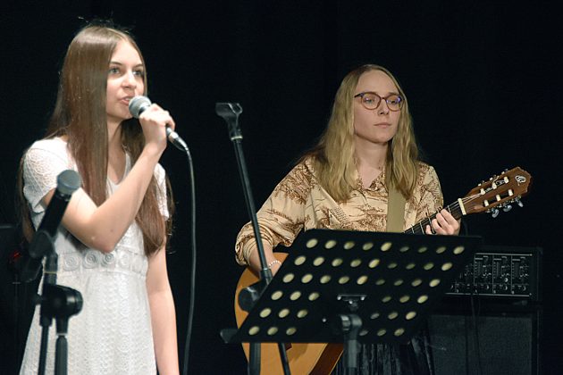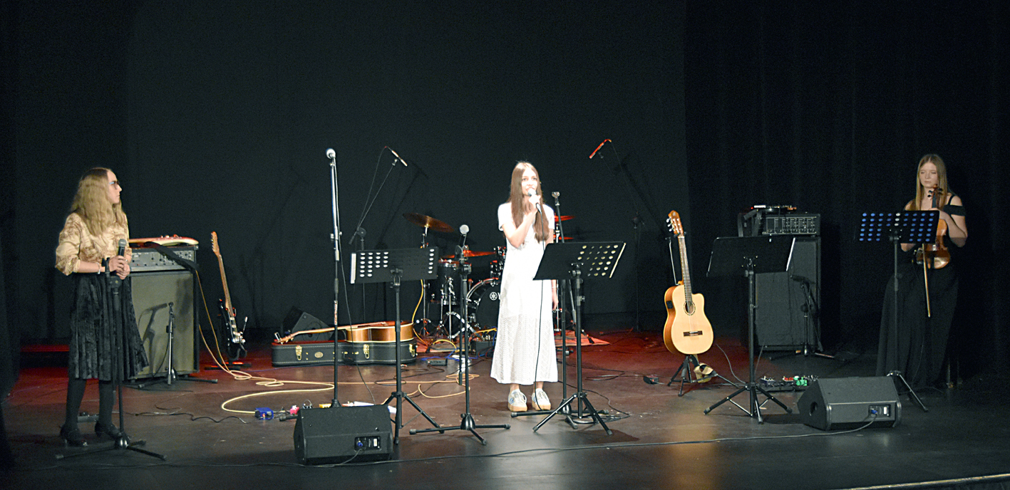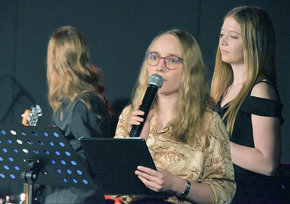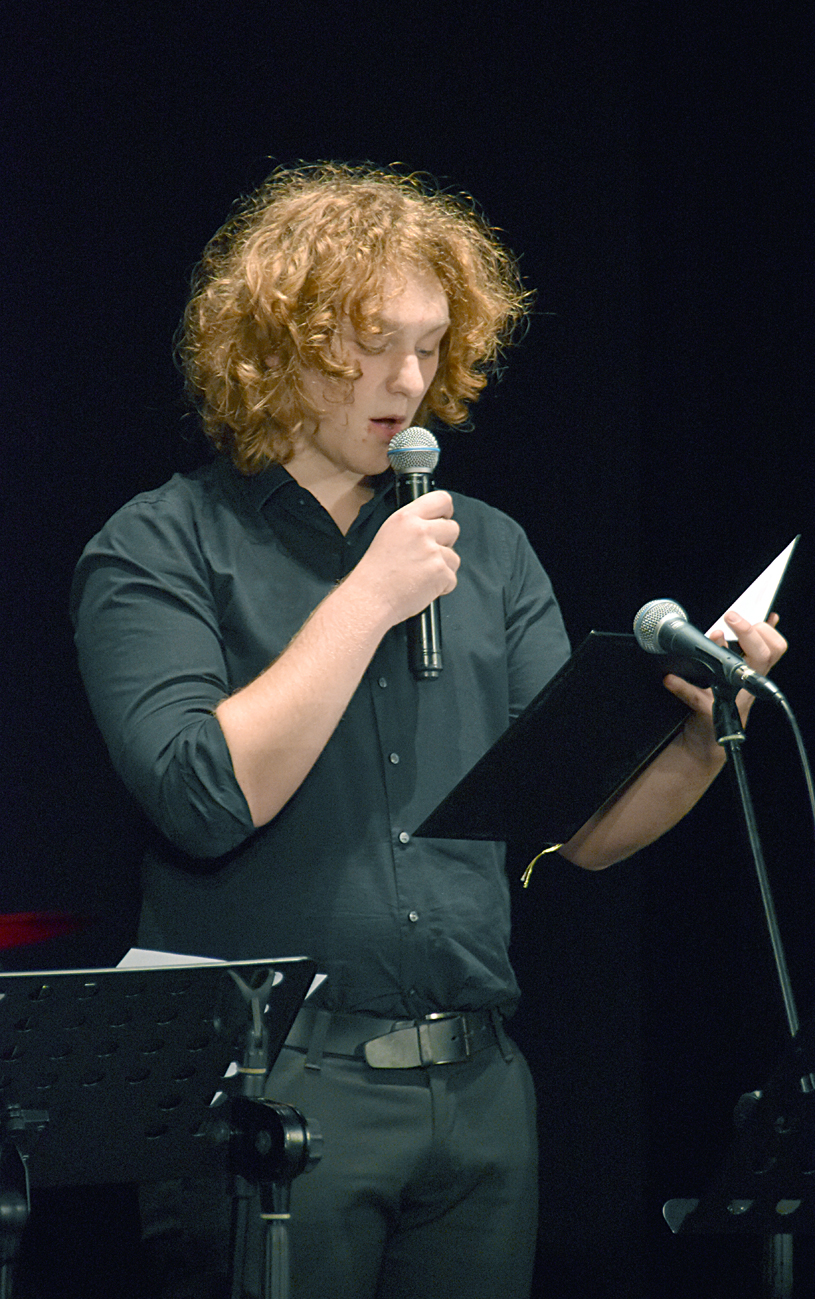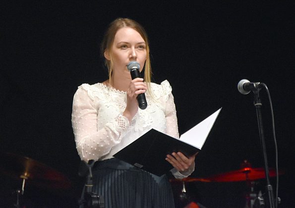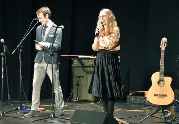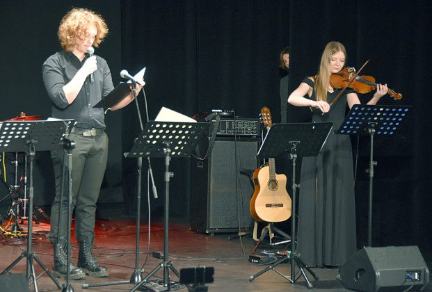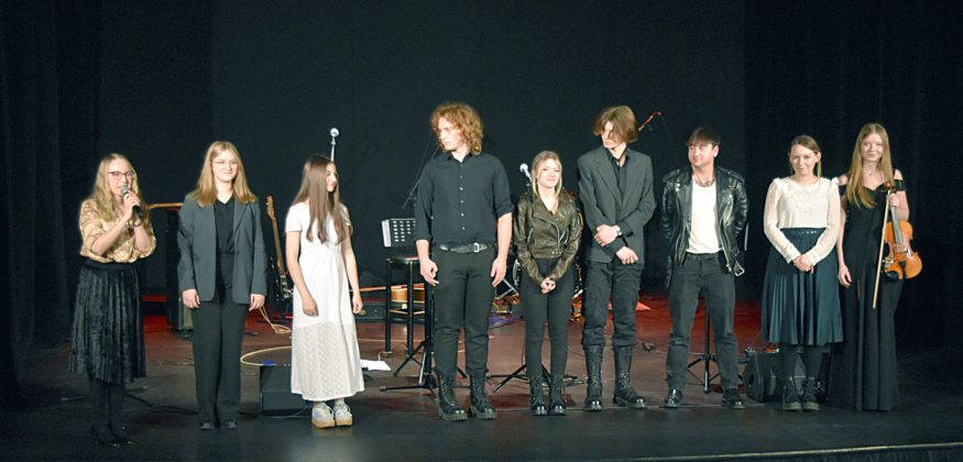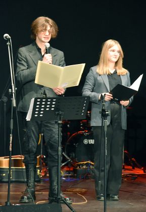 Na zdjęciu grupowym, od lewej: prowadząca wieczór Emilia Kawa (śpiew, gitara), Oliwia Porębska (wiersze), Oliwia Kawa (wiersze, śpiew), Bartek Gąsiorek, Maja Białecka (wokal), Paweł Skoczeń, Tomasz Pusz (gitara), Nikola Iwanecka (wiersze), Małgorzata Kałuża (skrzypce).