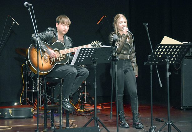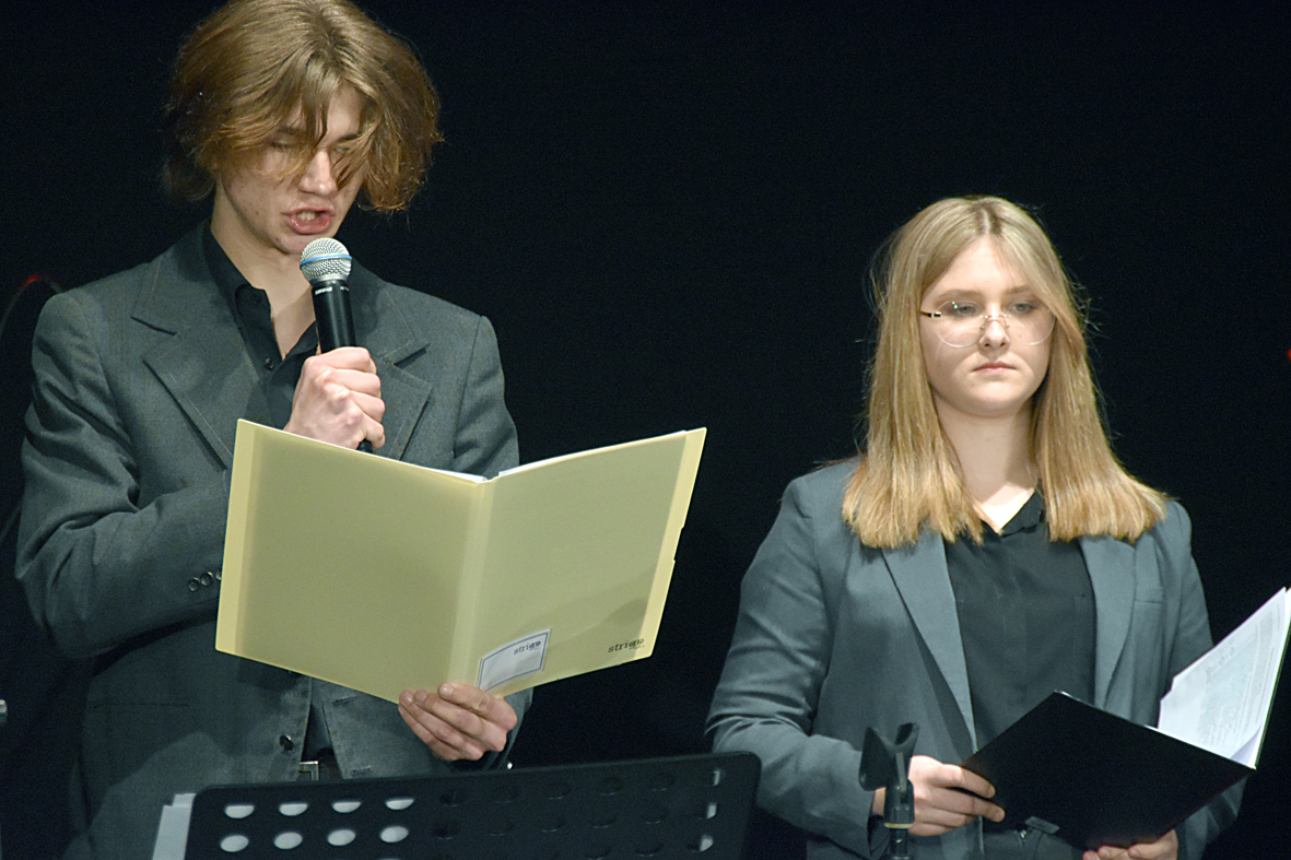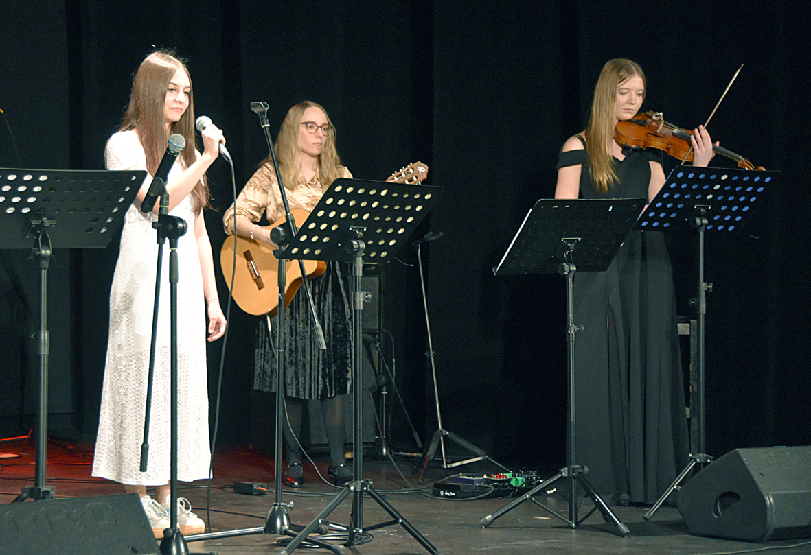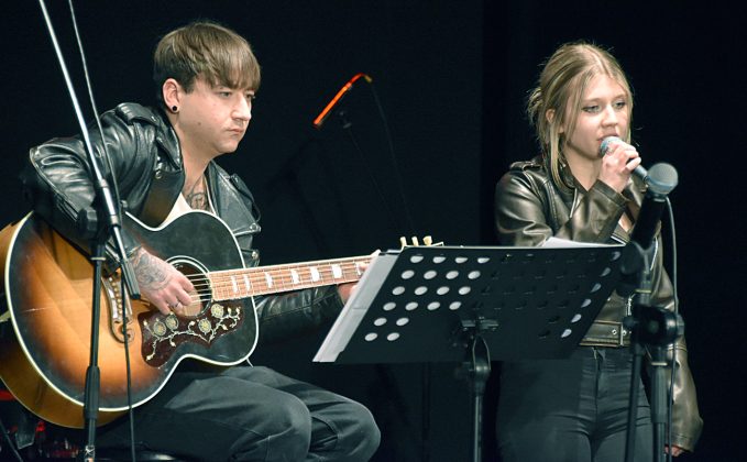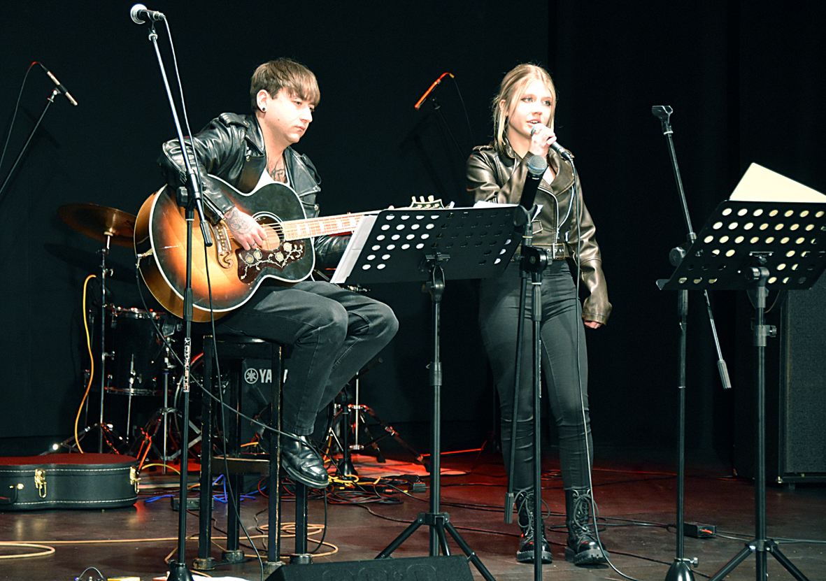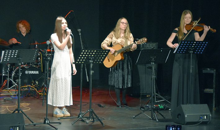 Na zdjęciu grupowym, od lewej: prowadząca wieczór Emilia Kawa (śpiew, gitara), Oliwia Porębska (wiersze), Oliwia Kawa (wiersze, śpiew), Bartek Gąsiorek, Maja Białecka (wokal), Paweł Skoczeń, Tomasz Pusz (gitara), Nikola Iwanecka (wiersze), Małgorzata Kałuża (skrzypce).