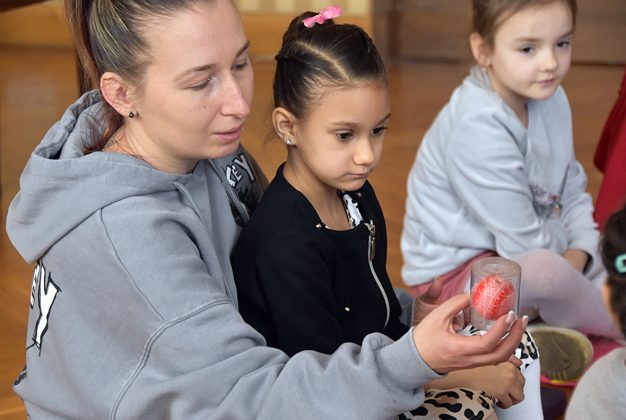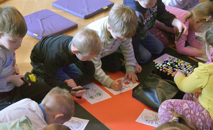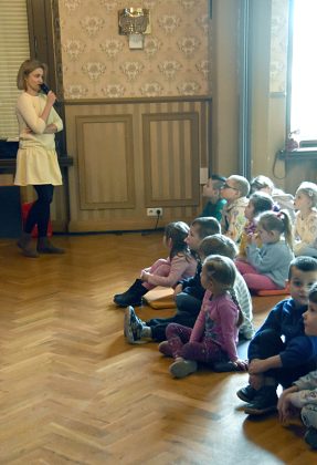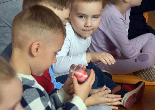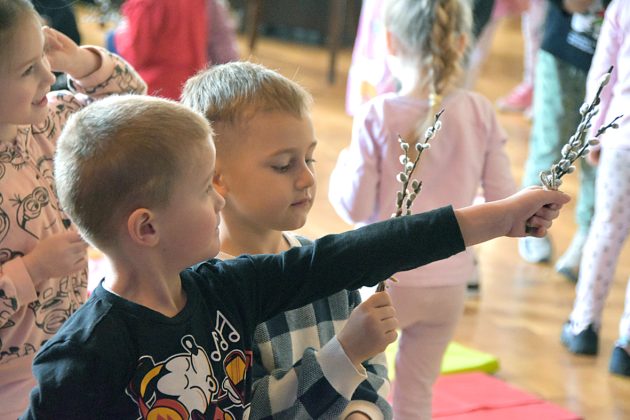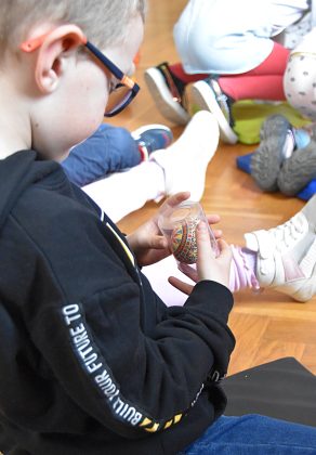 Zajęcia projektu „A kuku! Kultura!” to cykliczne spotkania w formie audycji edukacyjnych i warsztatów, prowadzone przez ludzi sztuki: wokalistów, muzyków, pisarzy, aktorów, filmowców, plastyków. Dzieci mogą posłuchać opowieści o życiu artysty, inspiracjach i pracy. Jest to okazja to poznania kulisów pracy artysty, pasjonata w danej dziedzinie. Zapraszane są również do wspólnego tworzenia. Tak było i tym razem. Bogdan Jasiński opowiadał o zwyczajach wielkanocnych, jak na wiosenne spotkanie przystało. Dzieci mogły też spróbować sił w malowaniu wzorów na pisanki oraz wiązaniu palm z gałązek wierzbowych.