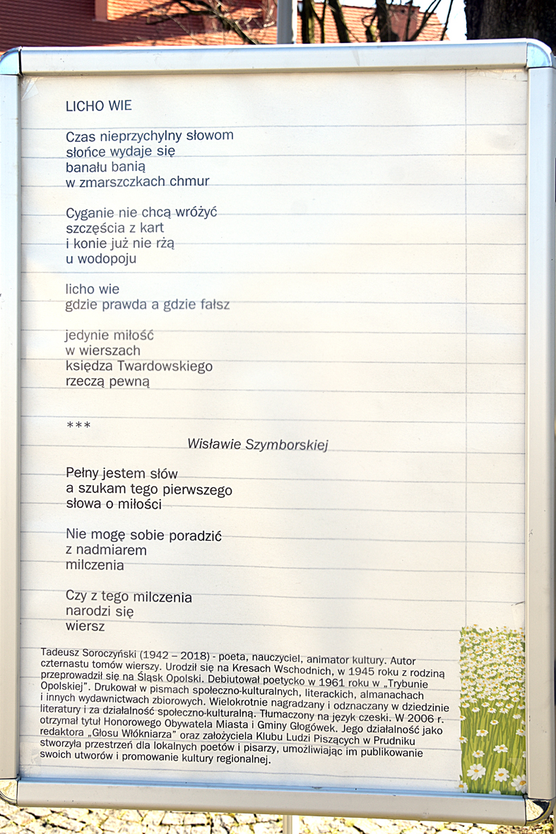 Lokalny ruch poetycki, zapoczątkowany w latach 70. XX wieku, kontynuuje swoją działalność od września zeszłego roku przy Prudnickim Ośrodku Kultury, pod nazwą Prudnicki Klub Literacki. Z Klubem związanych jest aktualnie kilkanaście osób, z różnym dorobkiem literackim. Ekspozycję „Wiersze w Ogrodzie” można oglądać/ czytać do 23 maja.