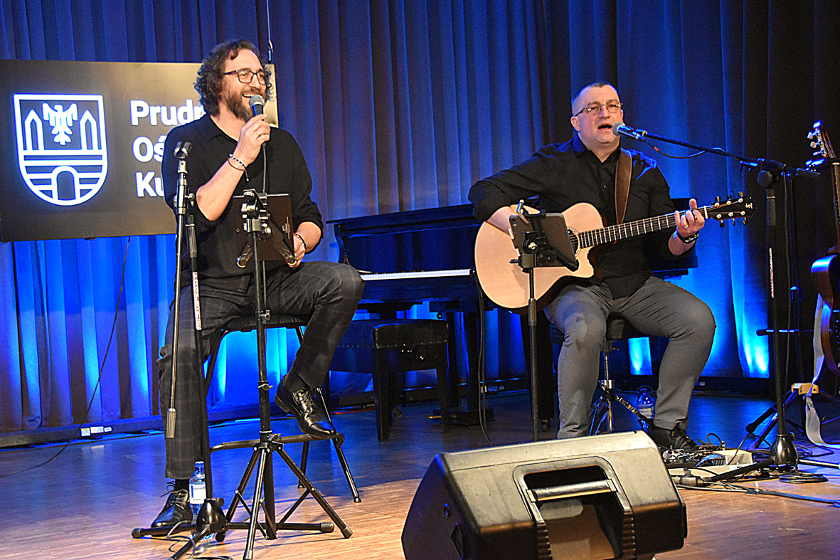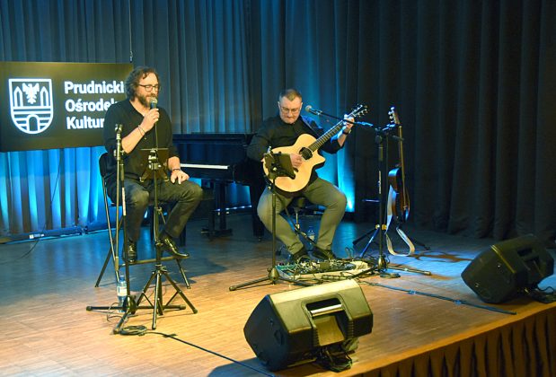 21 marca Prudnicki Ośrodek Kultury zaprosił więc na spotkanie z autorską piosenką poetycką: „Usiądźmy przed drogą” – koncert w wykonaniu Adama Szabata (śpiew), któremu towarzyszył Waldemar Korzeniowski (gitara). W piątkowym koncercie w sali reprezentacyjnej POK zabrzmiały przede wszystkim utwory z autorskiej płyty Adama Szabata pt. „Usiądźmy przed drogą”. Był też czas na piosenki do wierszy Bolesława Leśmiana (płyty Adama Szabata „Szabat u Leśmiana”) oraz repertuaru hrubieszowskiego Teatru Piosenki Młyn. Koncert zapowiedziała Anna Szmyt-Boguniewicz.