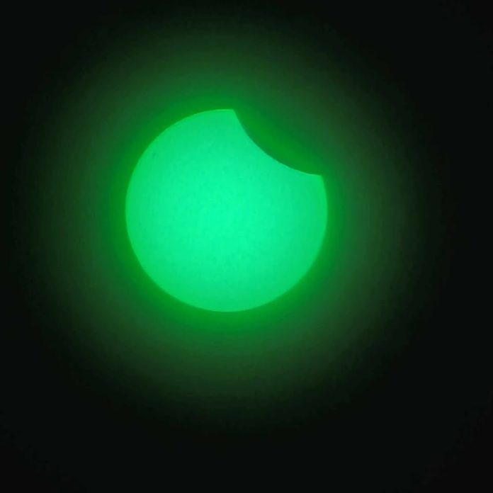 Obserwacji sprzyjało częściowe zachmurzenie nieba, stąd same chmury częściowo tworzyły filtr ułatwiający oglądanie zjawiska. Mimo wszystko nawet w takiej sytuacji nie wolno patrzeć gołym okiem wprost w Słońce.