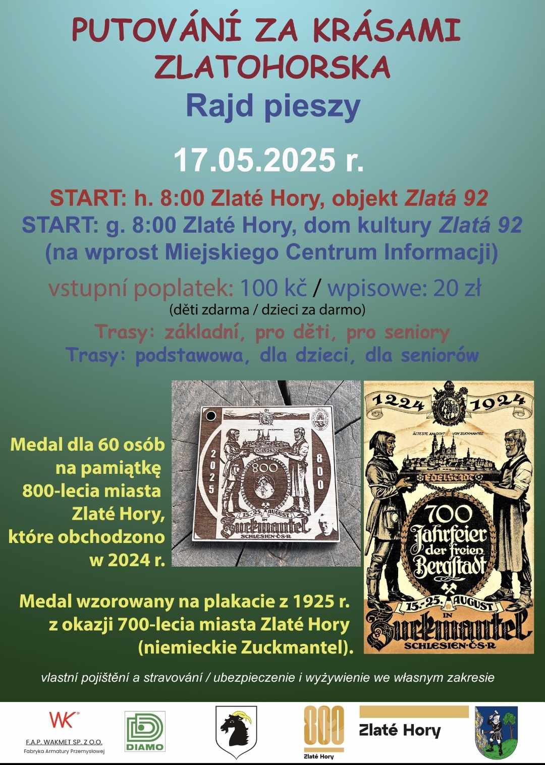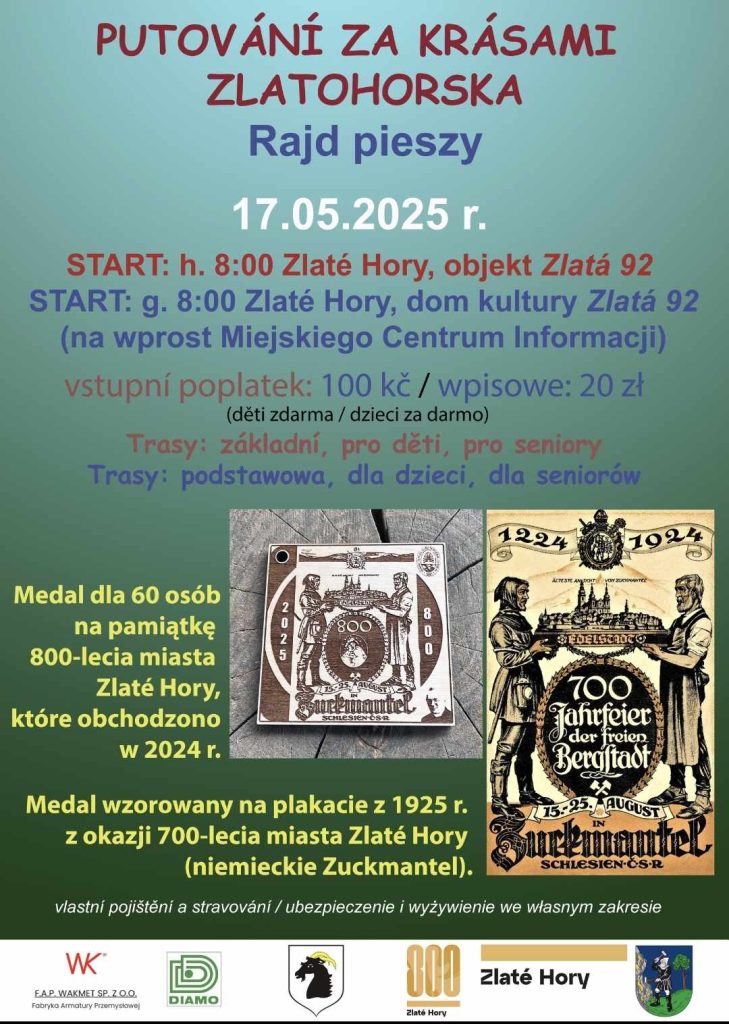 Start rajdu znajdować się będzie w Galerii Zlatá 92 za budynkiem Muzeum Miejskiego o godz. 8.00. Wpisowe na miejscu: 100 koron lub 20 złotych, dzieci bezpłatnie. Putování odbędzie się 17 maja.