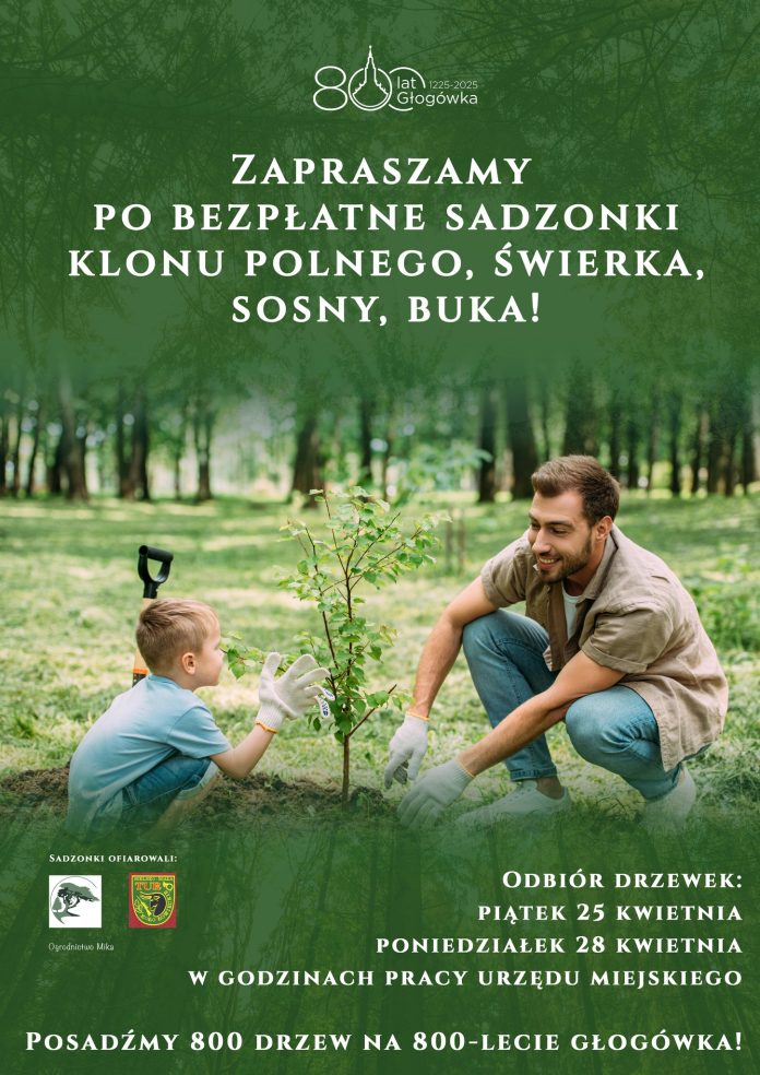 Wyróżnione 800 drzew na 800-lecie miasta Przez Jarosław Tomaszewicz - 25 kwietnia 2025 1 Facebook Twitter Pinterest WhatsApp (grafika: Gmina Głogówek) Darmowe sadzonki klonu polnego, świerka, sosny oraz buka przygotował na 800-lecie Głogówka tamtejszy magistrat. – Drzewka można odebrać dziś do godz. 14.00 lub w poniedziałek w godz. 7:30 – 17.00 w Urzędzie Miejskim w Głogówku.
