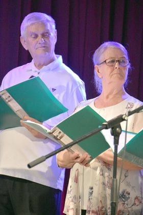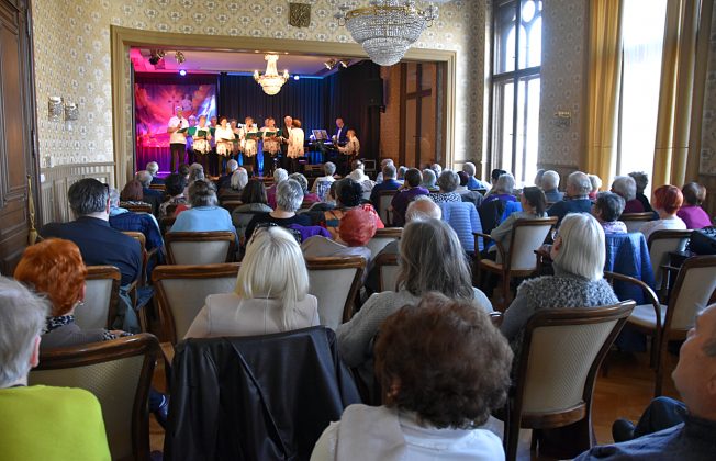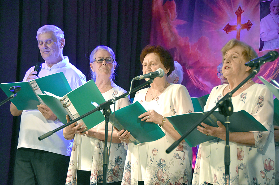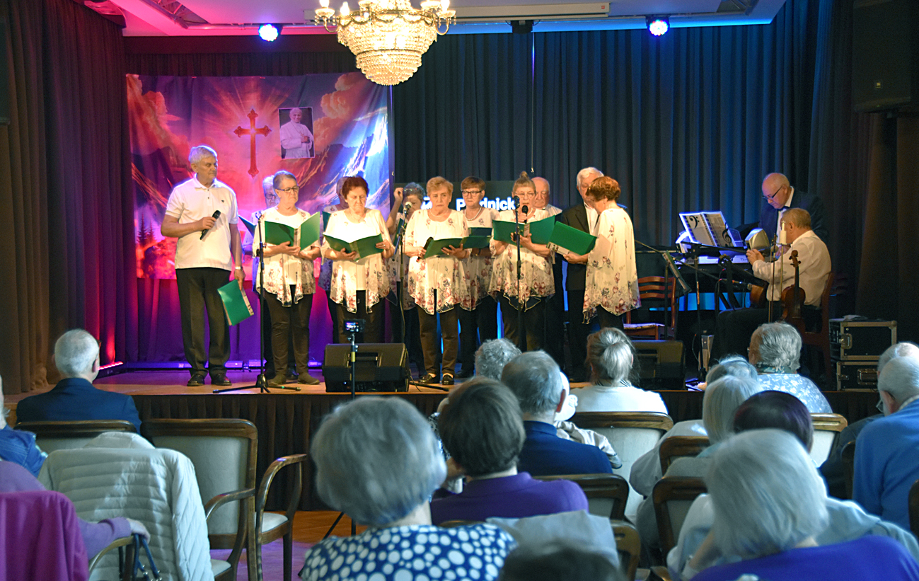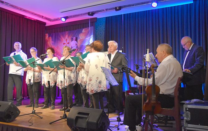 Nie był to jednak smutny program. Choć momentami wzruszający, były pieśni i piosenki, wiersze, ale też liczne anegdoty. Nie zabrakło też wspólnego śpiewania. Na spotkaniu Danuta Janusz witała seniorów z PUTW, ale też z zaprzyjaźnionych grup: Uniwersytetu Złotego Wieku Pokolenia (z Alicją Janią i Reginą Sieradzką), Stowarzyszenia Przyjaciół I LO w Prudniku, Klubu Ławeczka, Klubu Senior+, przyjaciół z Dytmarowa, Marka Karpa i innych. Powitała również opiekuna PUTW z Państwowej Akademii Nauk Stosowanych w Nysie dr inż. Piotra Bernata, który na koniec gratulował występu: – Jestem pełen podziwu za tę wytrwałość w przygotowaniu, bo wiem, że przeciwności było wiele i udało się je wszystkie pokonać, chylę czoła.