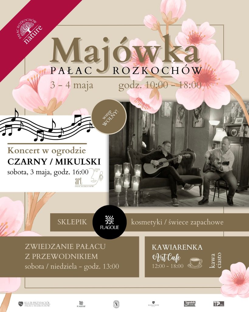 Najbliższa okazja ku temu będzie podczas majówki, 3 i 4 maja (sobota – niedziela). Obiekt będzie otwarty w godzinach od 10.00 do 18.00, a od południa czynna będzie kawiarenka Art Cafe (kawa i domowe ciasto). Zarówno w sobotę jak i niedzielę o godz. 13.00 zorganizowane zostanie zwiedzanie niedostępnych na co dzień części pałacu z przewodnikiem. Odwiedziny Rozkochowa to też okazja do spaceru po przypałacowym, kilkunastohektarowym parku. Przed okresem wegetacyjnym oczyszczony został kolejny jego fragment oraz udrożniona została dawna aleja obok drogi w kierunku Głogówka.