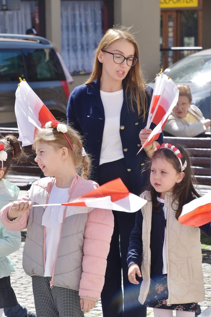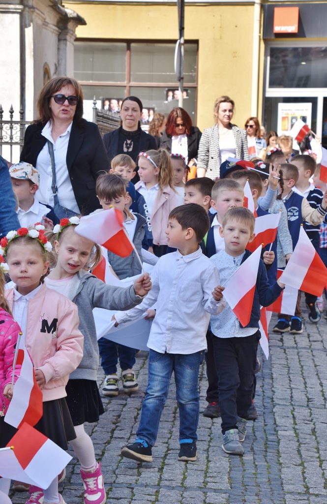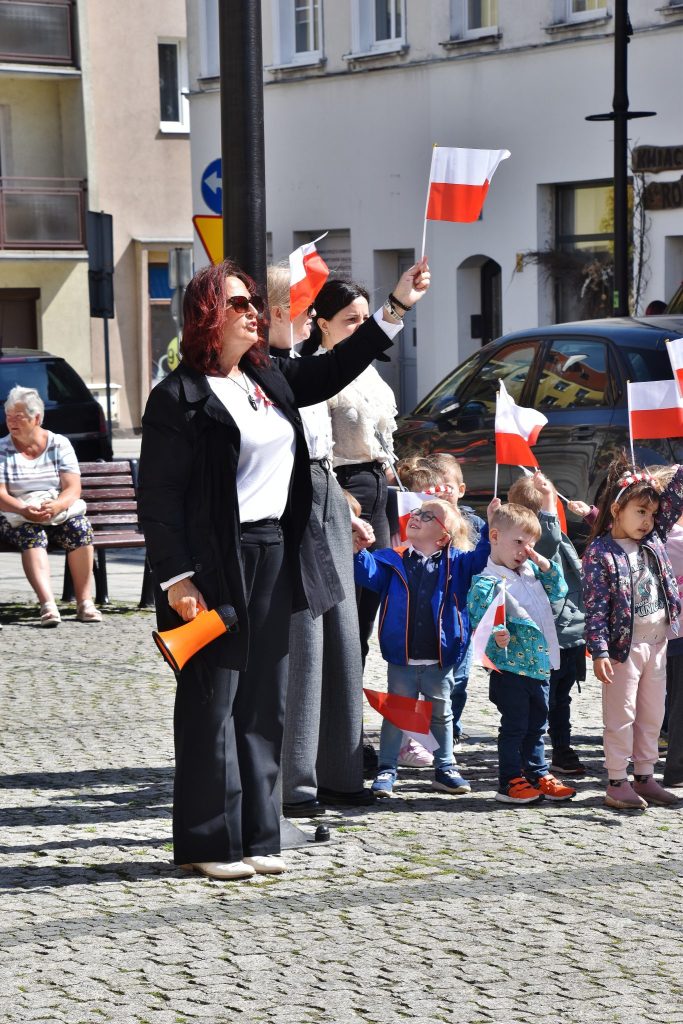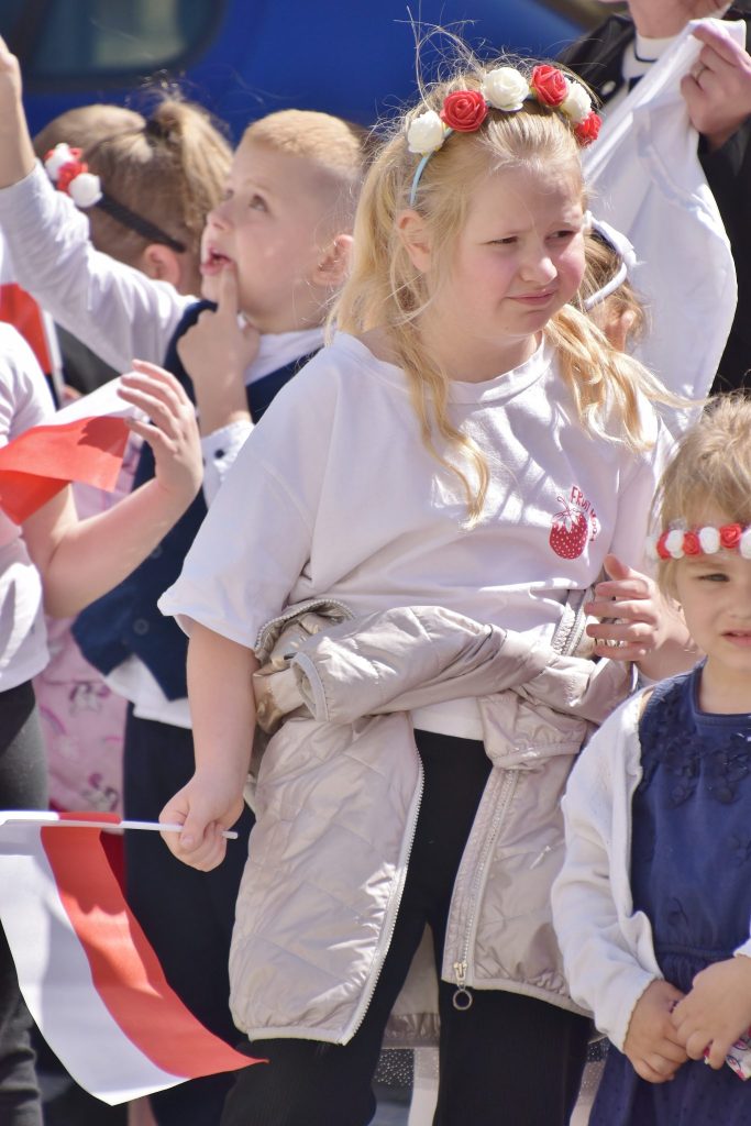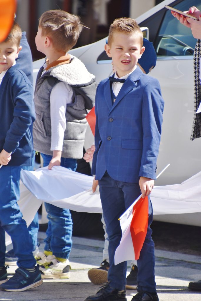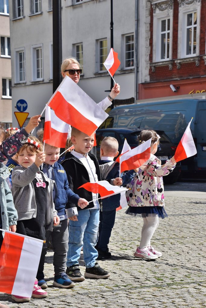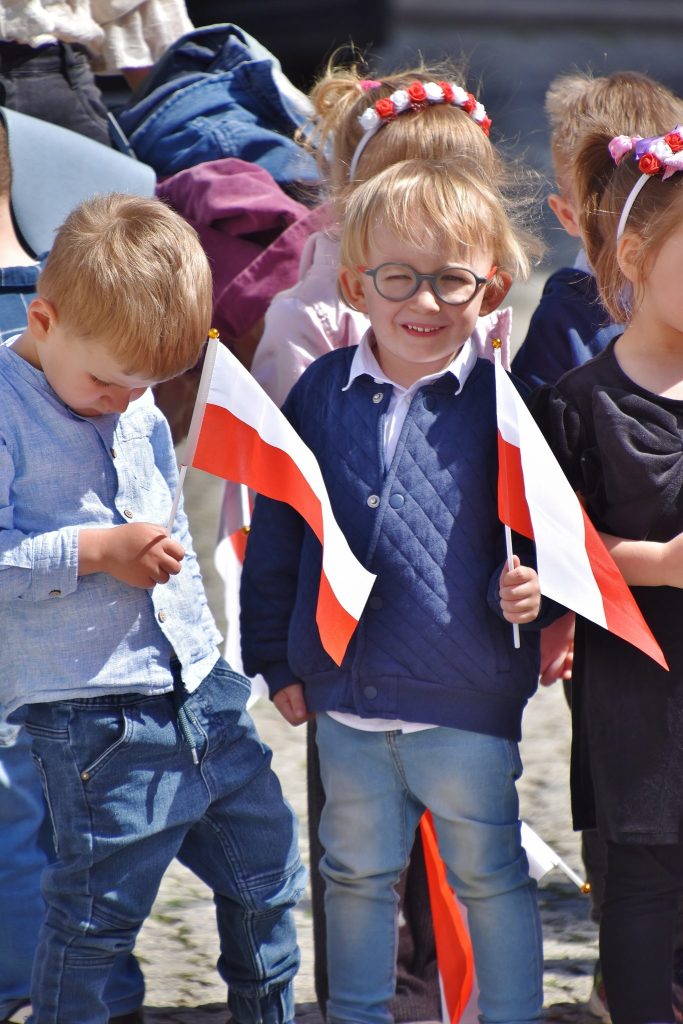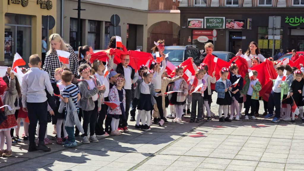Jeszcze przed początkiem długiej majówki dzieci z nauczycielkami Publicznego Przedszkola nr 7 w Prudniku obchodziły Święto Flagi Polski. Najmłodsi ze śpiewem na ustach przemaszerowali na rynek, gdzie zaśpiewali hymn Polski oraz prezentowali wielką, 10-metrową flagę narodową.