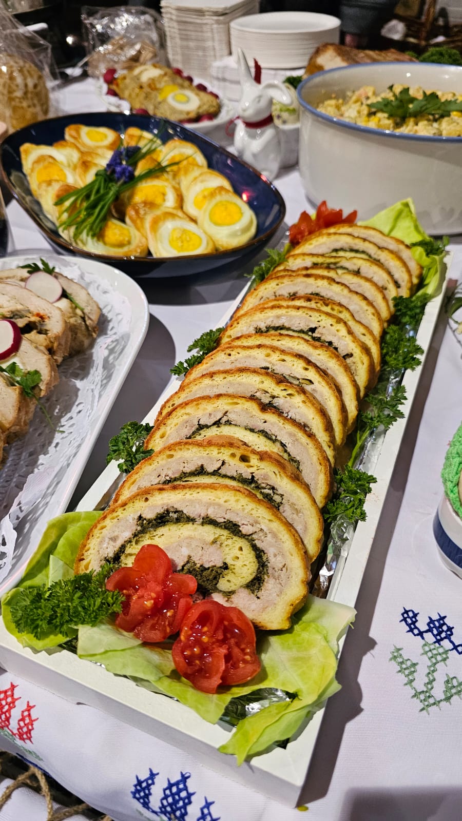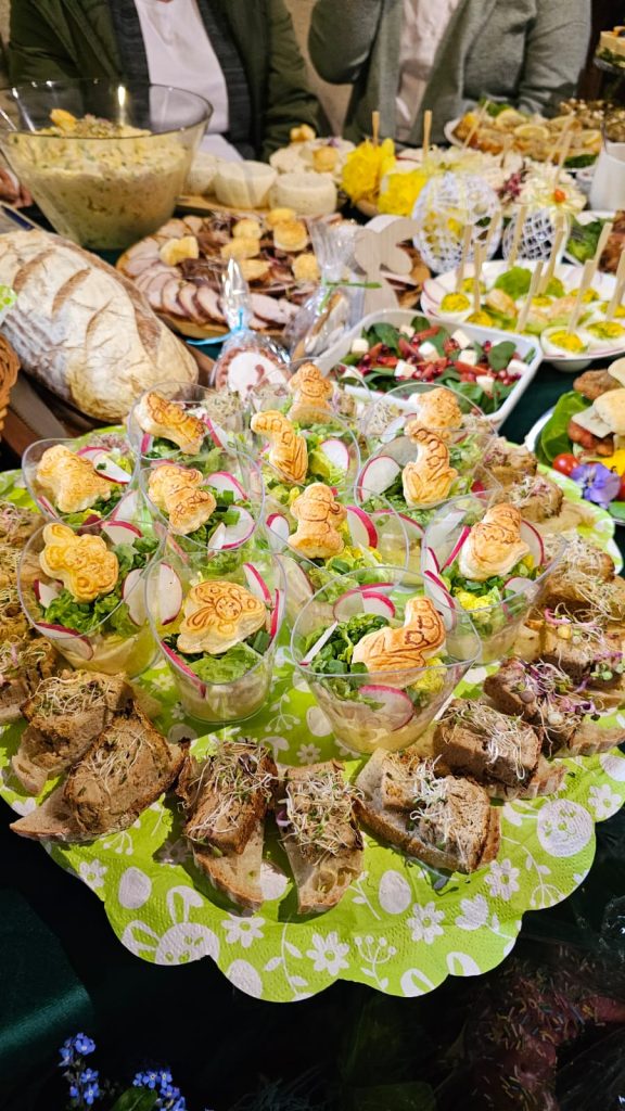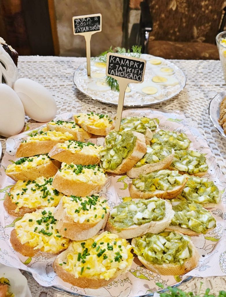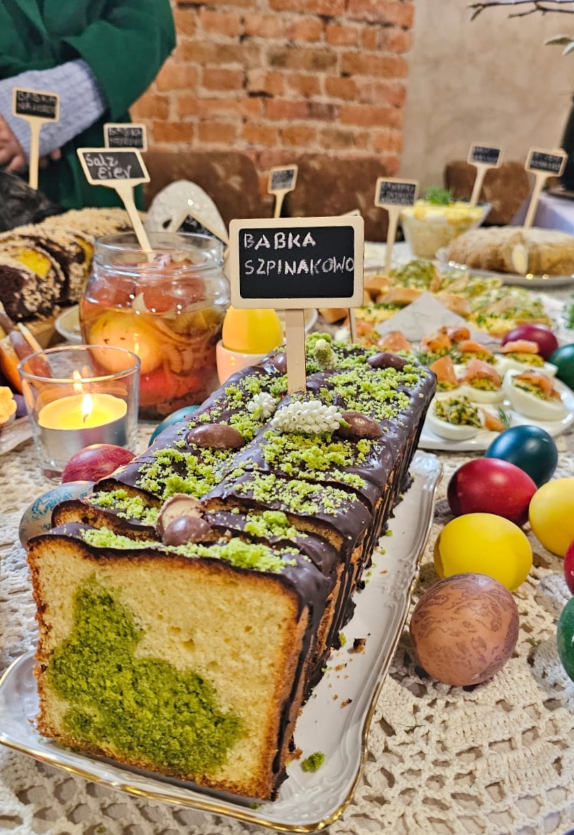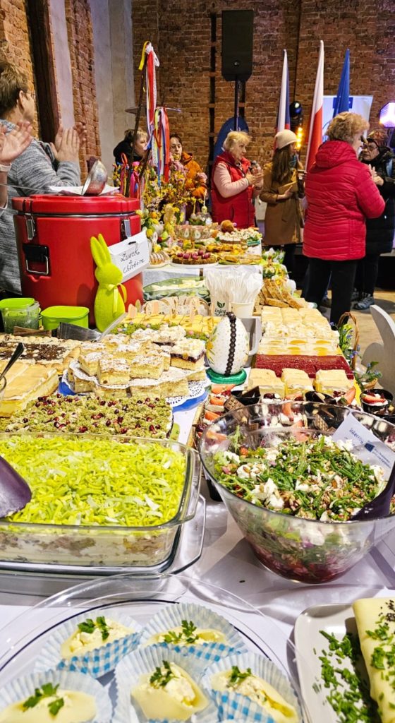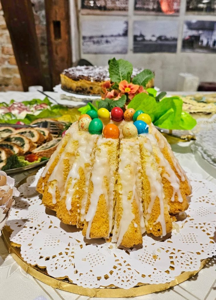 Jakie potrawy można było skosztować w stodole w Brożcu? Były produkty mięsne, sałatki, rolady, ciasta, mazurki, baranki, zajączki, desery, ciastka, baby i babeczki (np. marchewkowa, szpinakowa, pomarańczowo-drożdżowa, różowa), pasztety, kanapki, jajka na mnóstwo sposobów. Wszystko przygotowane w sposób bardzo atrakcyjny wizualnie. Wielkie uznanie dla pań, które musiały poświęcić co najmniej kilka dni na przygotowanie wszystkich tych przysmaków.