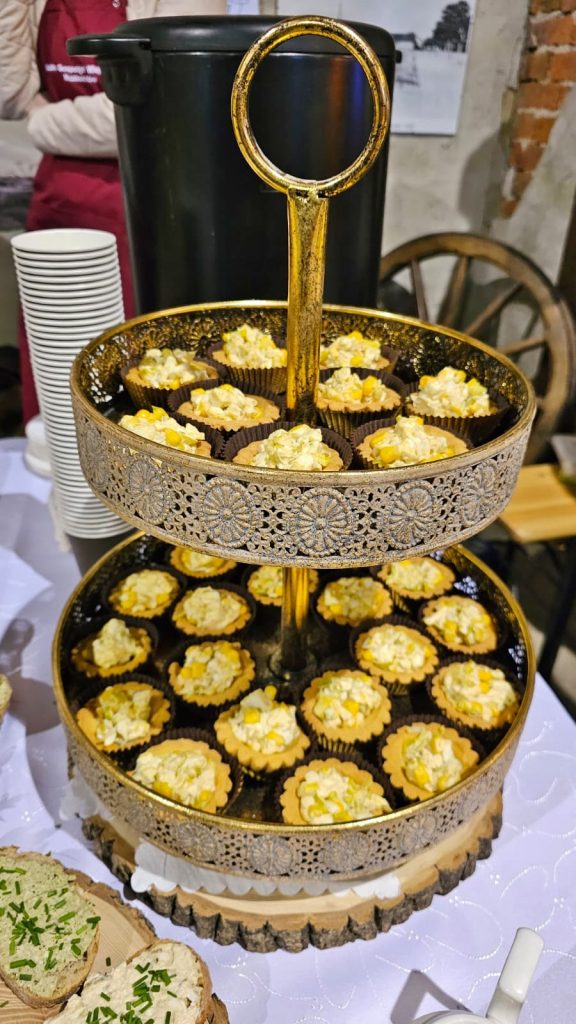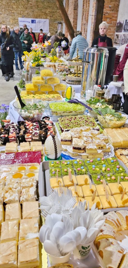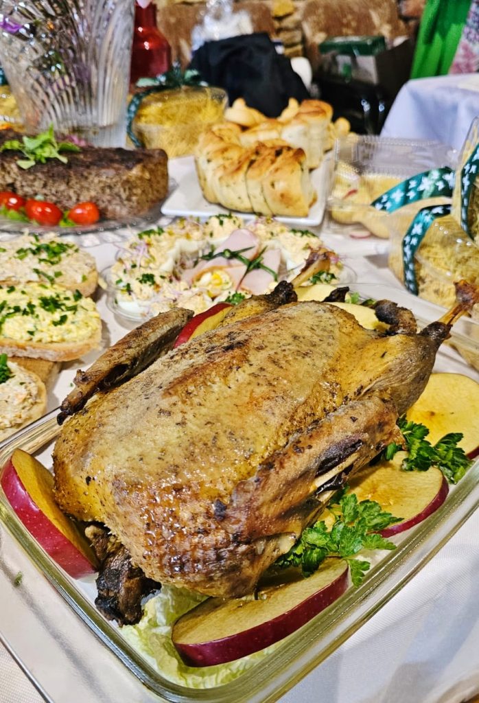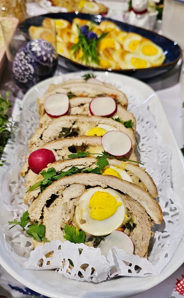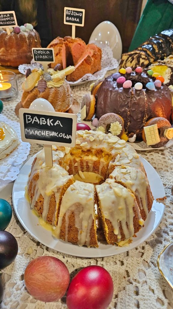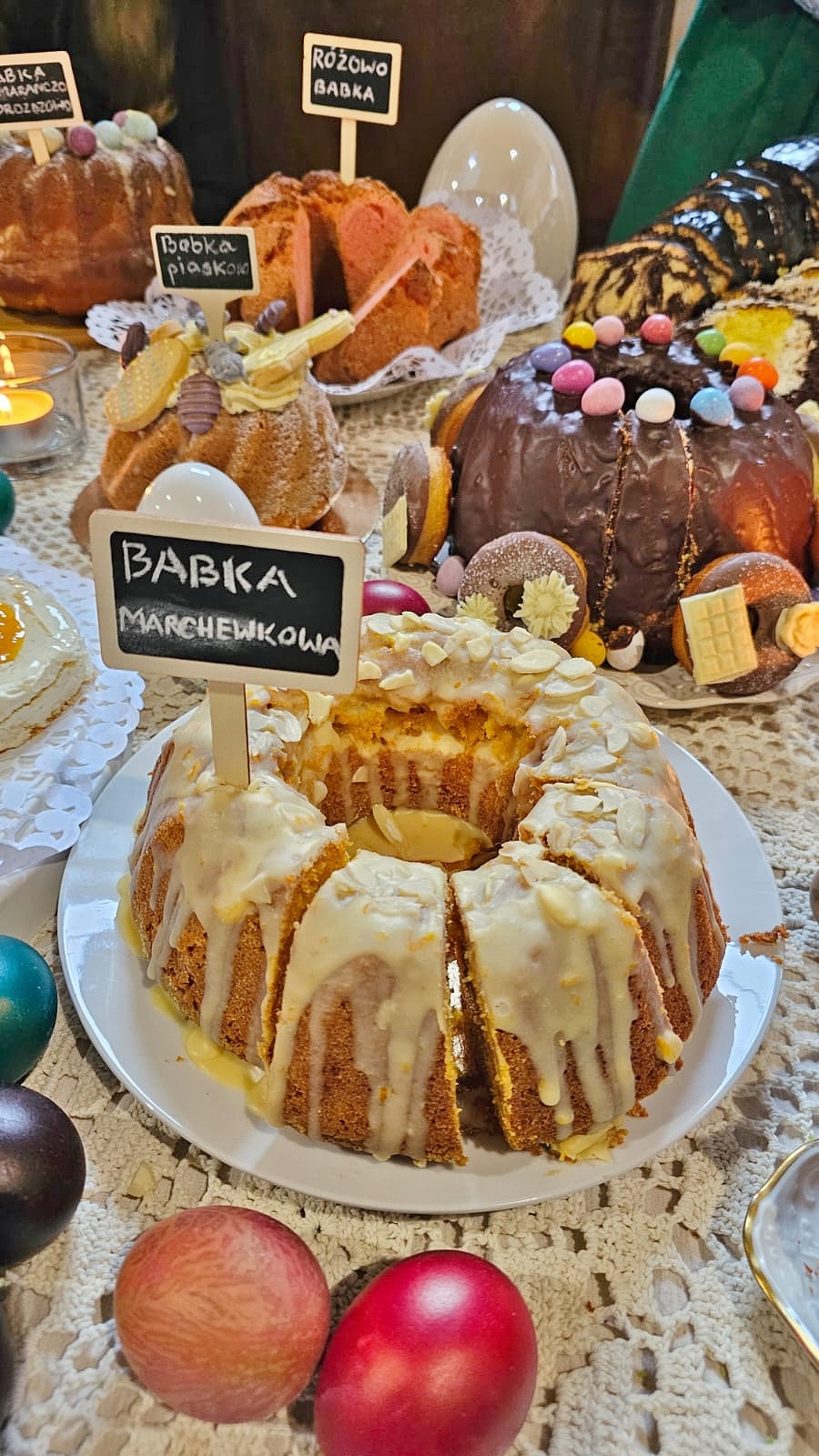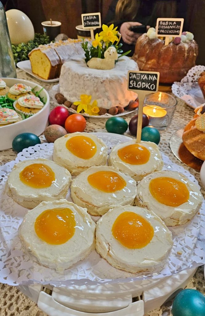 Jakie potrawy można było skosztować w stodole w Brożcu? Były produkty mięsne, sałatki, rolady, ciasta, mazurki, baranki, zajączki, desery, ciastka, baby i babeczki (np. marchewkowa, szpinakowa, pomarańczowo-drożdżowa, różowa), pasztety, kanapki, jajka na mnóstwo sposobów. Wszystko przygotowane w sposób bardzo atrakcyjny wizualnie. Wielkie uznanie dla pań, które musiały poświęcić co najmniej kilka dni na przygotowanie wszystkich tych przysmaków.