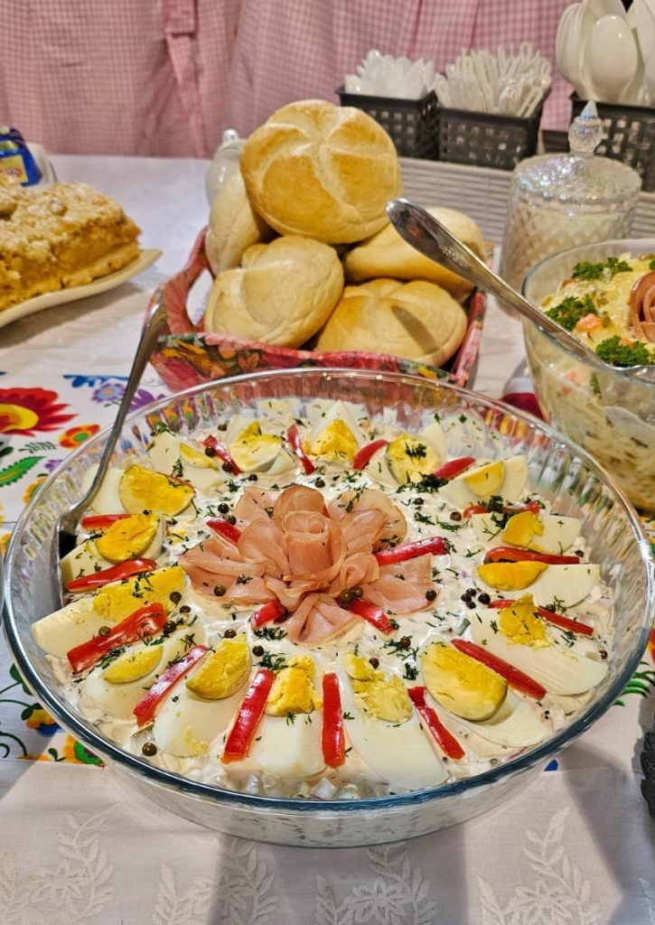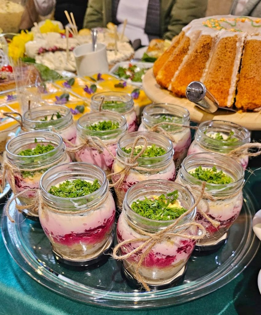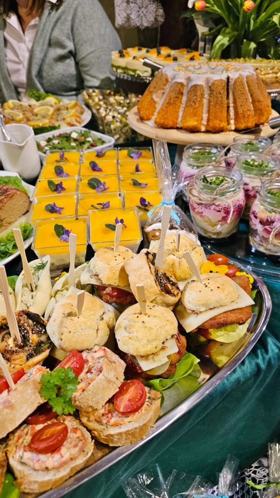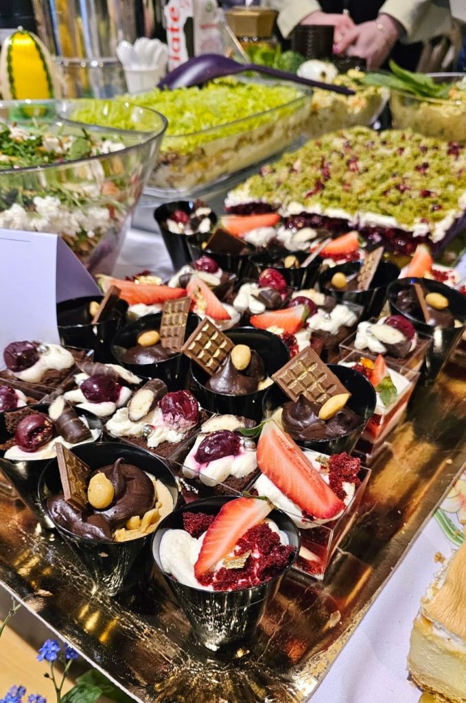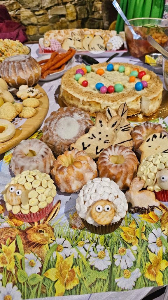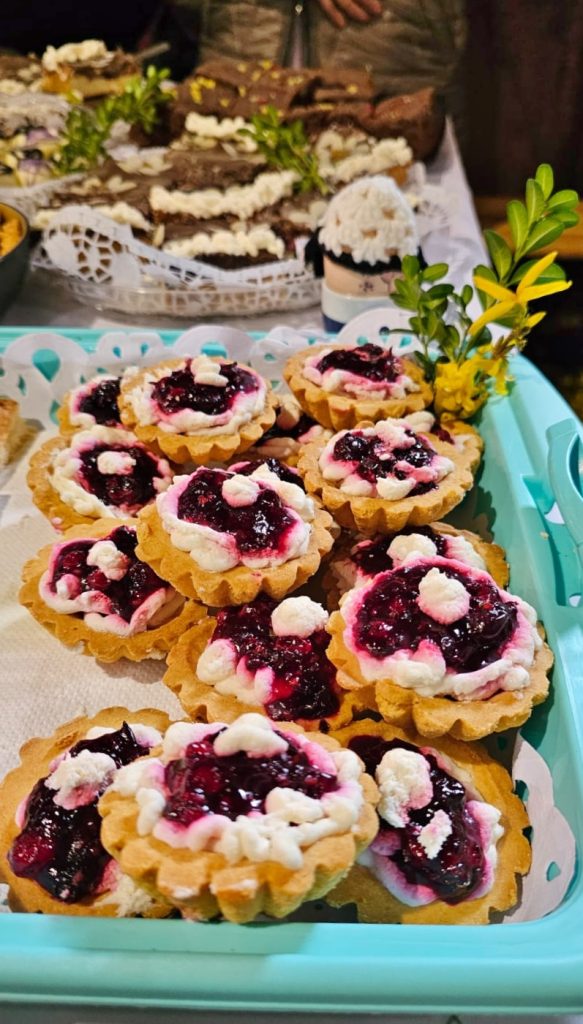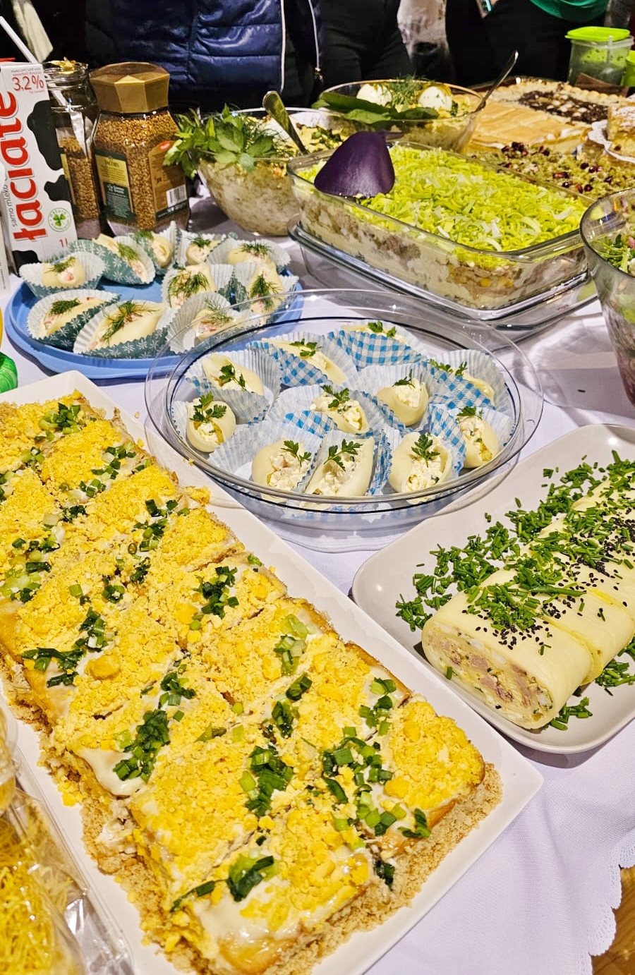Jakie potrawy można było skosztować w stodole w Brożcu? Były produkty mięsne, sałatki, rolady, ciasta, mazurki, baranki, zajączki, desery, ciastka, baby i babeczki (np. marchewkowa, szpinakowa, pomarańczowo-drożdżowa, różowa), pasztety, kanapki, jajka na mnóstwo sposobów. Wszystko przygotowane w sposób bardzo atrakcyjny wizualnie. Wielkie uznanie dla pań, które musiały poświęcić co najmniej kilka dni na przygotowanie wszystkich tych przysmaków.