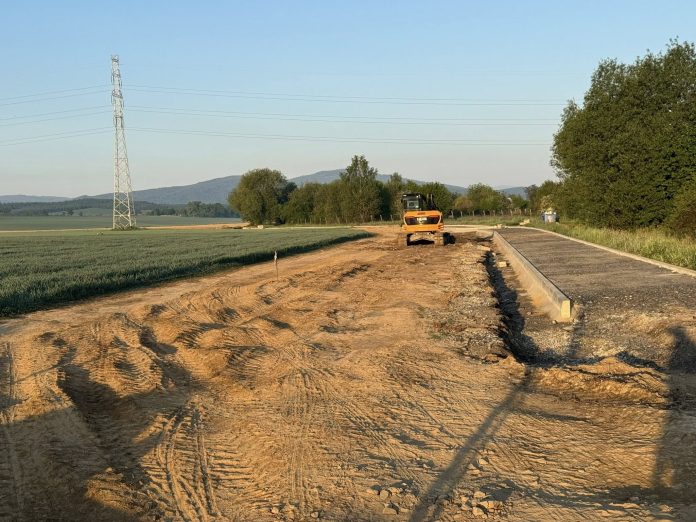 Trwają intensywne prace na budowie nowej drogi łączącej Prudnik z Łąką Prudnicką. Na zdjęciach aktualny postęp prac.