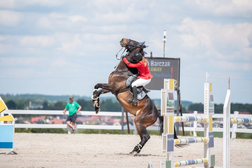 W sobotę Damian Zmorek (Cordalma W) zajął czwarte miejsce w konkursach 110 i 120 cm oraz trzecie i czwarte – 80 cm z trafieniem w normę czasu (w tym ostatnim m.in. na Il Magio z hodowli Stadniny Koni Prudnik). W rywalizacji z przeszkodami 110 cm dobry przejazd, bez punktów, odnotowała Marcelina Spychała, zajmując szóste miejsce. Majowe zawody zdominował Dominik Słodczyk z KJ Zbrosławice, który – na różnych koniach – brylował w konkursach z największym stopniem trudności. Młode konie z hodowli prudnickiej stadniny – Il Magio i El Viss zdobywały doświadczenie w rywalizacji.