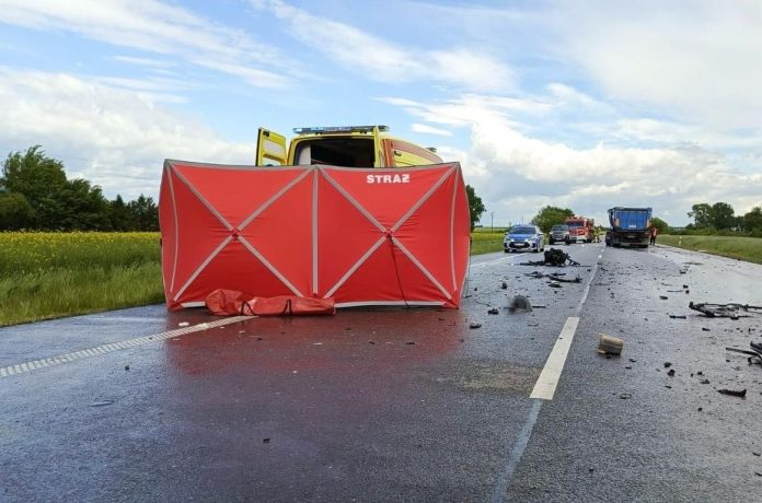 [AKTUALIZACJA] Niestety kobieta (27 lat) kierująca samochodem osobowym nie żyje. Droga jest zamknięta. OBJAZD poprowadzony został przez Lubrzę.