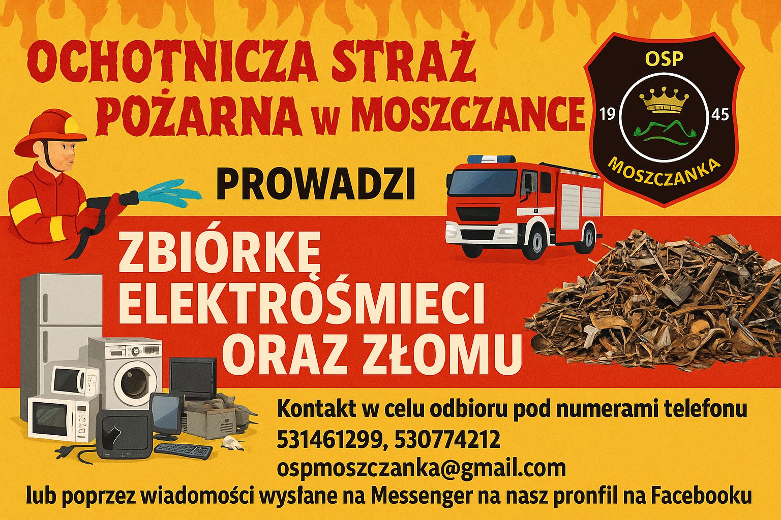 Jednostka Ochotniczej Straży Pożarnej w Moszczance prowadzi zbiórkę elektrośmieci oraz złomu.