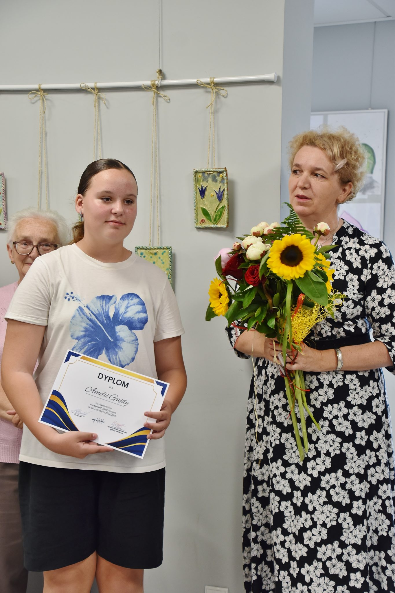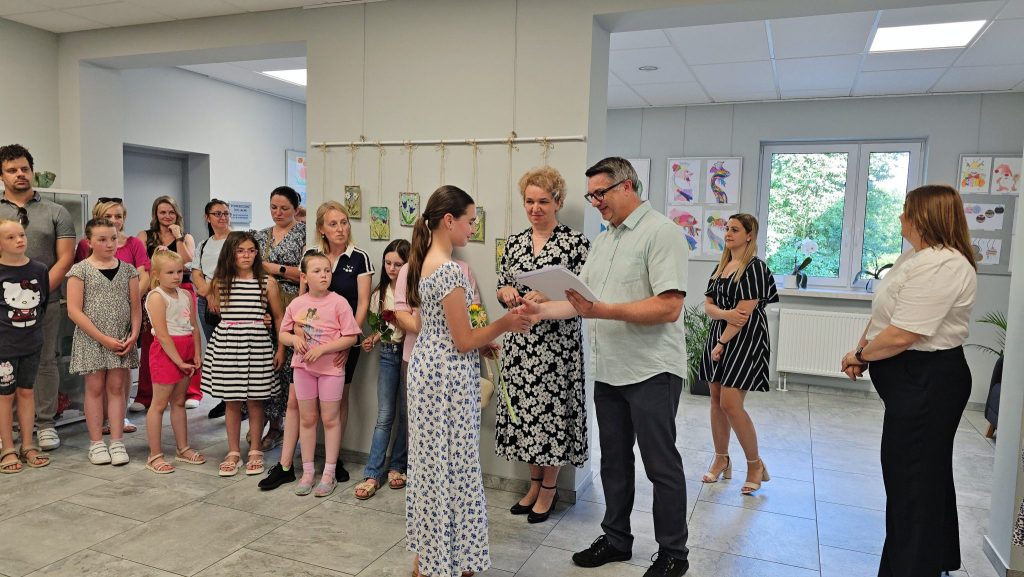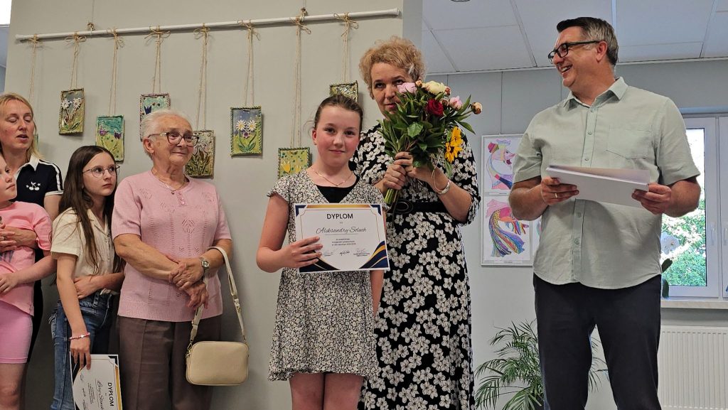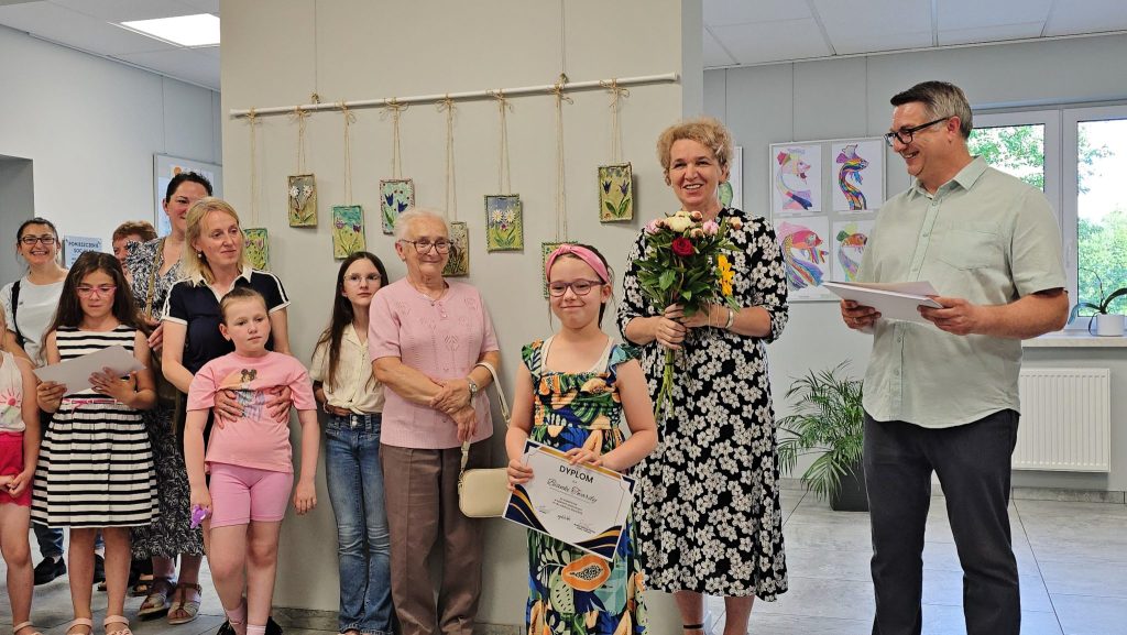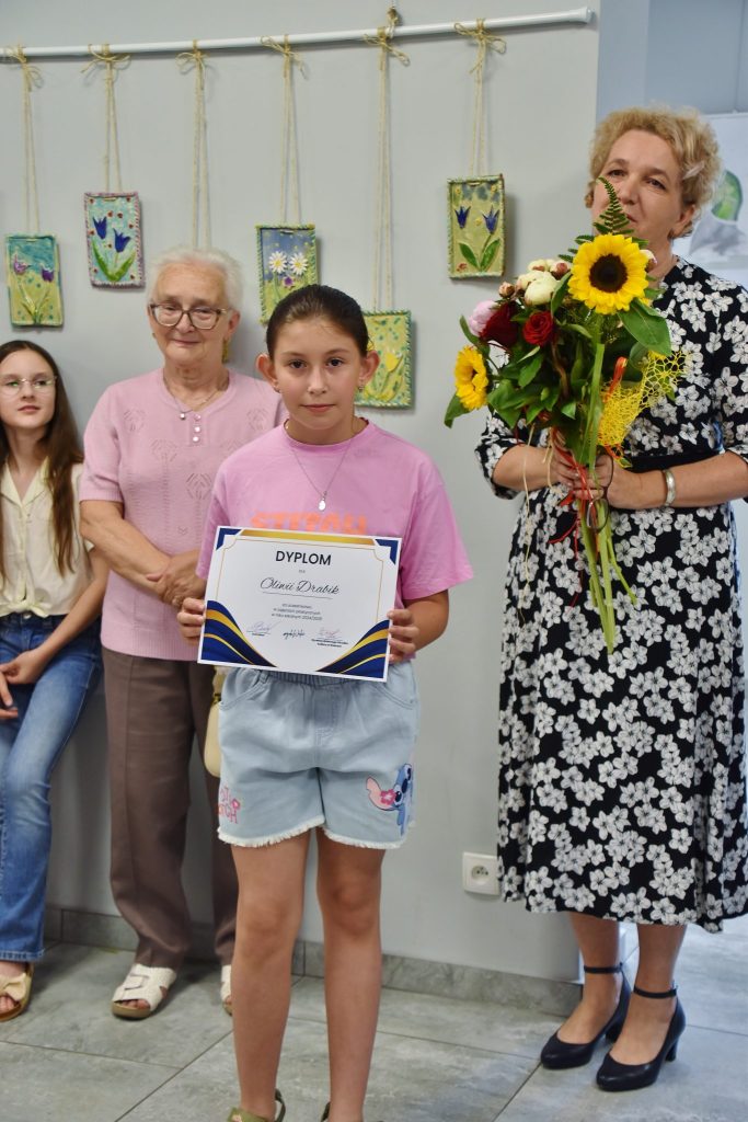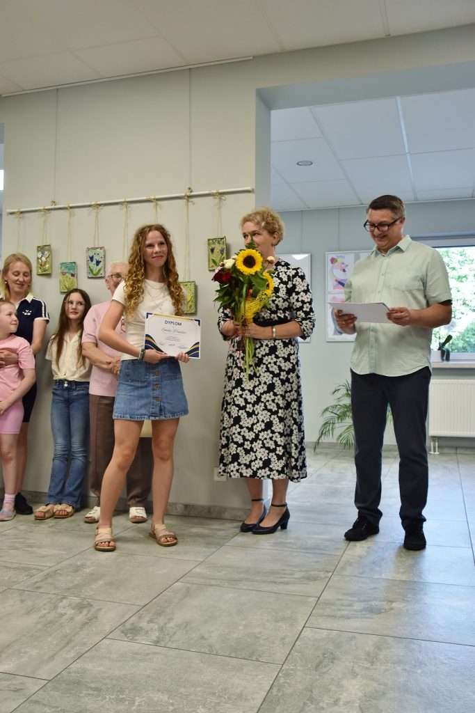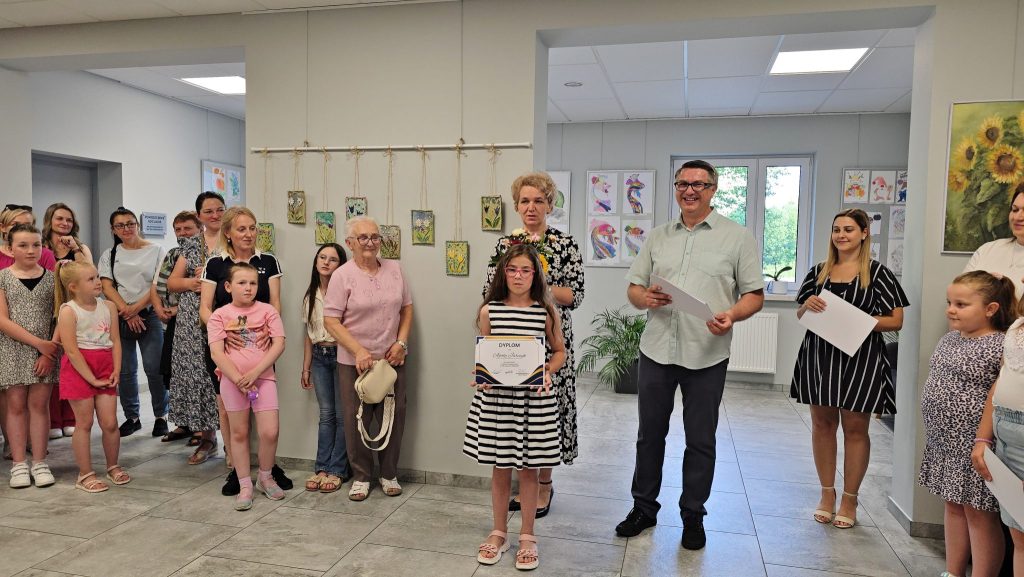 Miłym akcentem wernisażu było wyróżnienie młodych artystów dyplomami. Przy każdym twórcy pani Uliana powiedziała choćby zdanie o nim i jego pracach. W wernisażu wzięła udział zastępca wójt gminy Walce Ilona Wyciślok. Prace można oglądać w holu GOK-u.