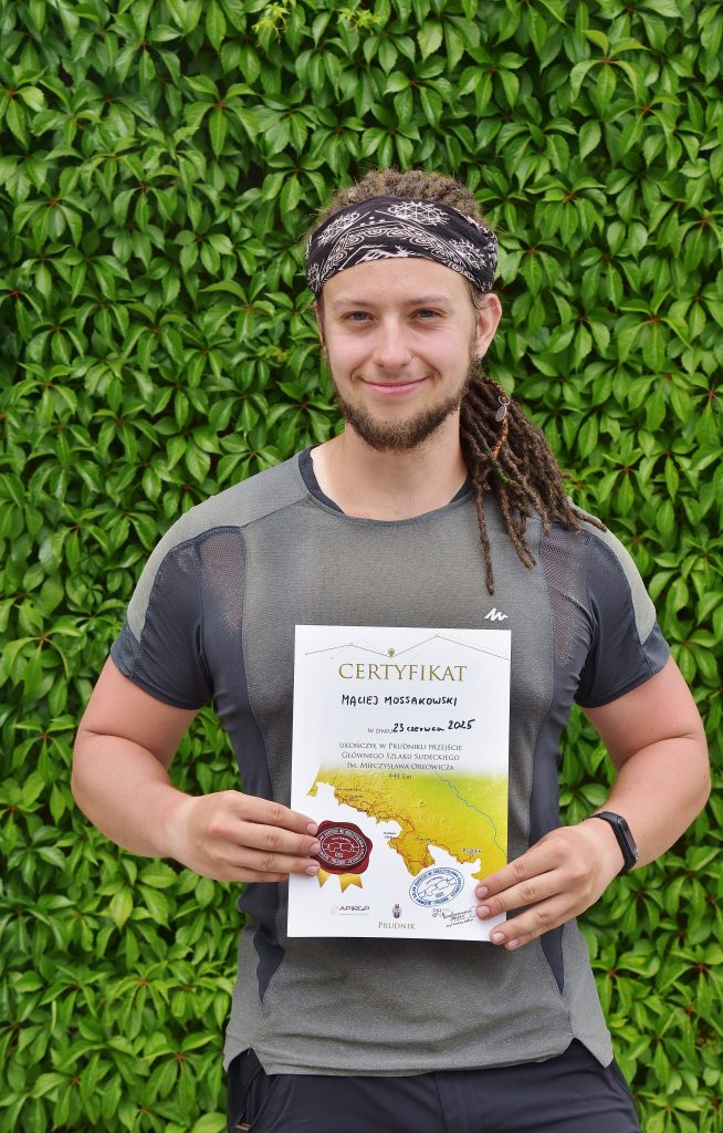 Kolejnym turystą, który ukończył Główny Szlak Sudecki w Prudniku, a dokładniej w redakcji Tygodnika Prudnickiego, jest Maciej Mossakowski z Łodzi.