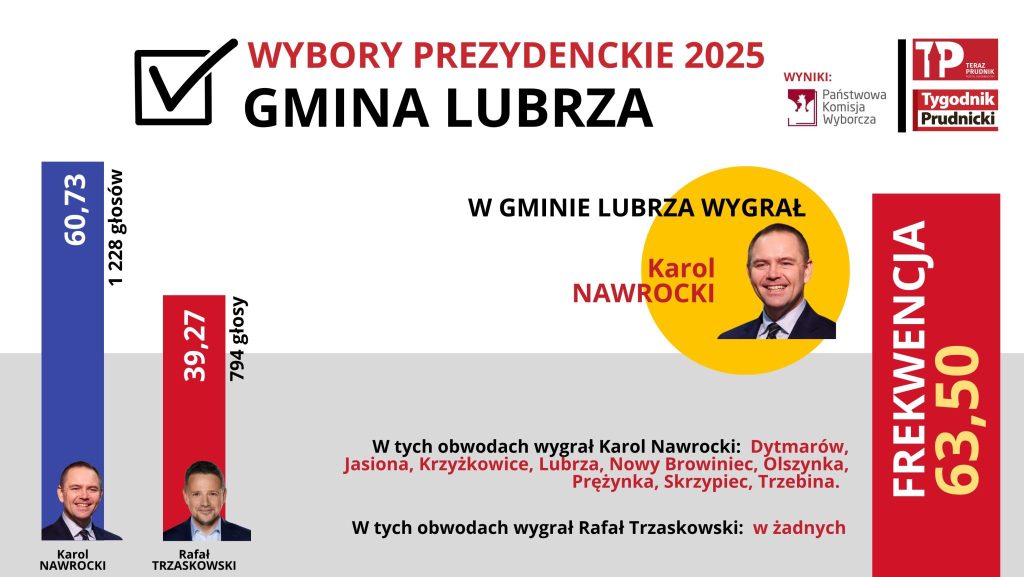 Jak pierwsze z powiatu prudnickiego opublikowane zostały wyniki wyborów prezydenckich z gminy Lubrza.