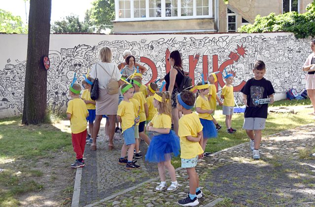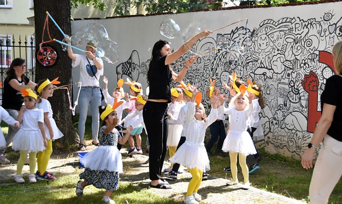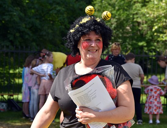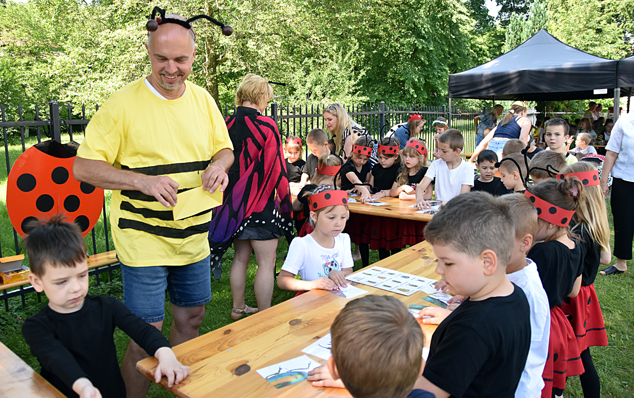 Grupy z przedszkoli przybyły na imprezę najczęściej także w stylizacji, przebraniach „owadów”, było więc kolorowo, trochę głośno i radośnie. Pogoda dopisała (wyjątkowo letnia aura), rok szkolny już się kończy, po co więc siedzieć w murach szkoły czy przedszkola. Najlepsza zabawa na zewnątrz. Brawa dla POK-u.