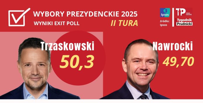 Według wyników badań exit poll zwycięzcą drugiej tury wyborów prezydenckich został Rafał Trzaskowski.