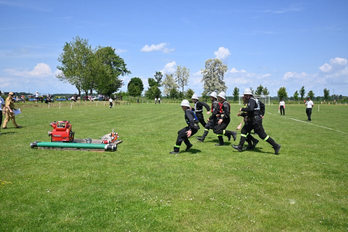 W konkurencji musztry strażackiej zarówno w drużynie męskiej i żeńskiej na pierwszym miejscu uplasowała się drużyna z OSP Łąka Prudnicka.