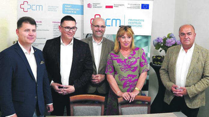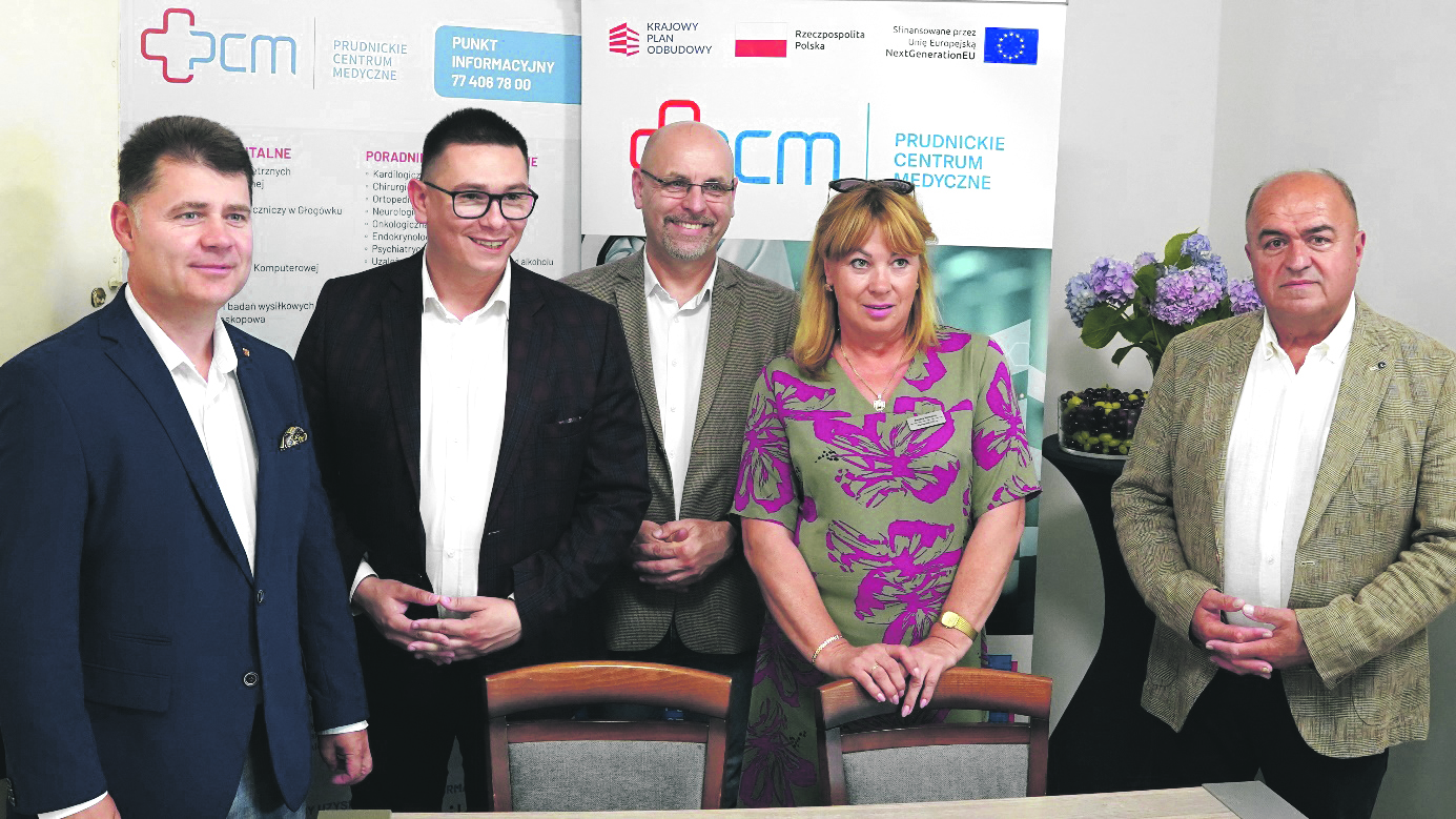 Umowę na realizację inwestycji podpisali Paweł Rubiński, prezes Zarządu Prudnickiego Centrum Medycznego S.A., oraz Janusz Adamów, pełnomocnik Zakładu Remontowo-Budowlanego, który będzie wykonawcą prac. Wszystko odbyło się w obecności starosty Radosława Roszkowskiego, burmistrza Głogówka Piotra Bujaka oraz pracowników PCM odpowiedzialnych za przygotowanie projektu.