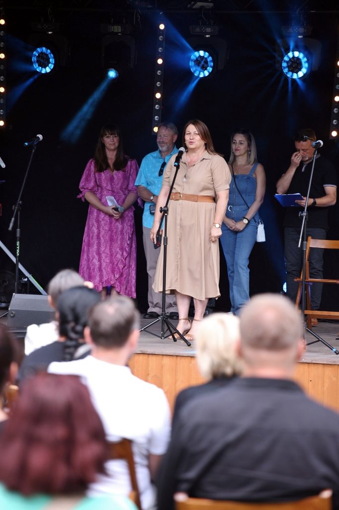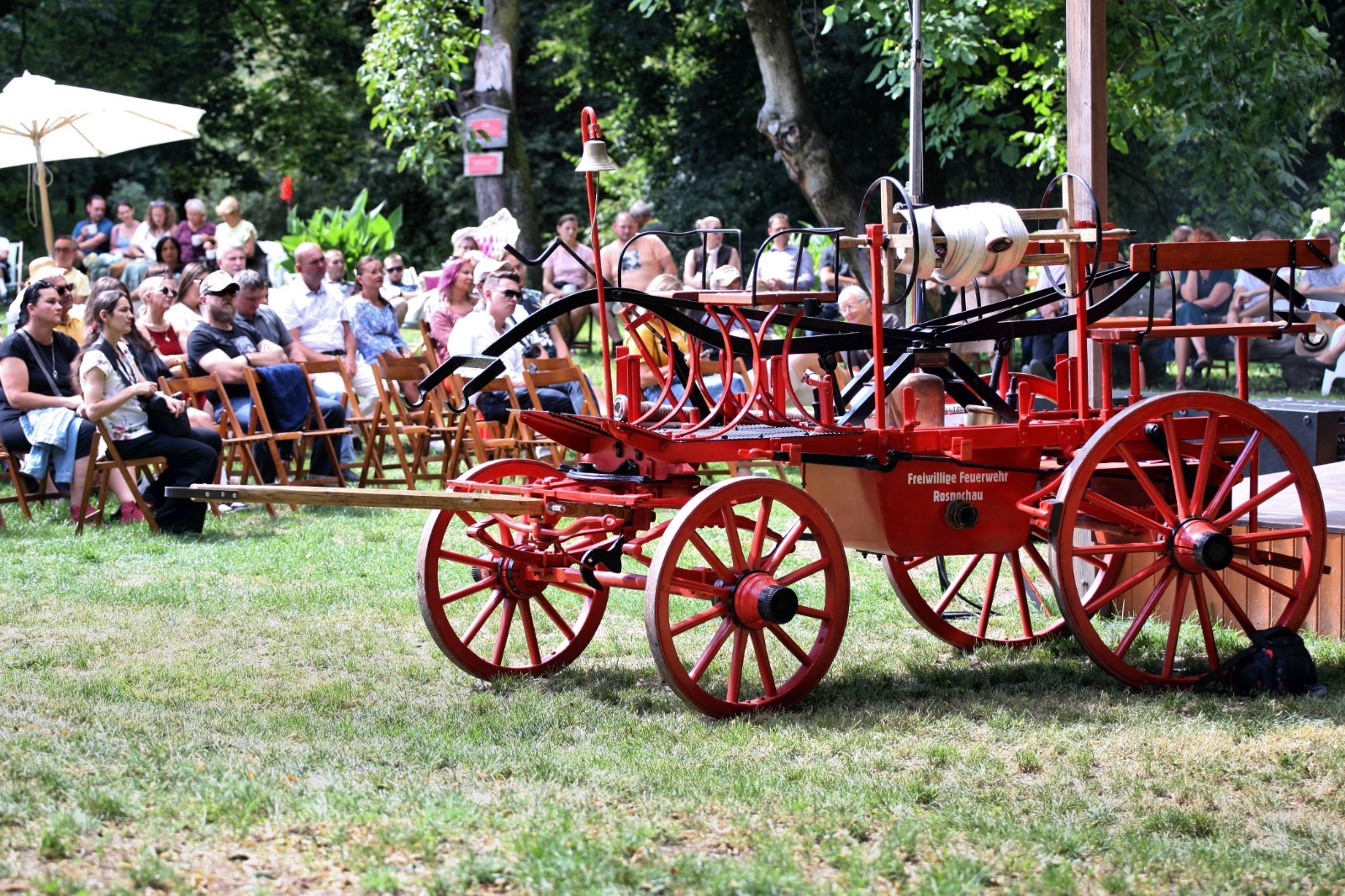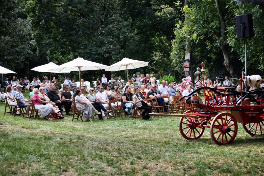 Strażacy z OSP Rozkochów, obok sceny, wyeksponowali przedwojenną pompę na wozie, która symbolicznie przypominała, że miejscowa formacja ogniowa założona została w 1908 r. przez hrabiego Seherr-Thossa.