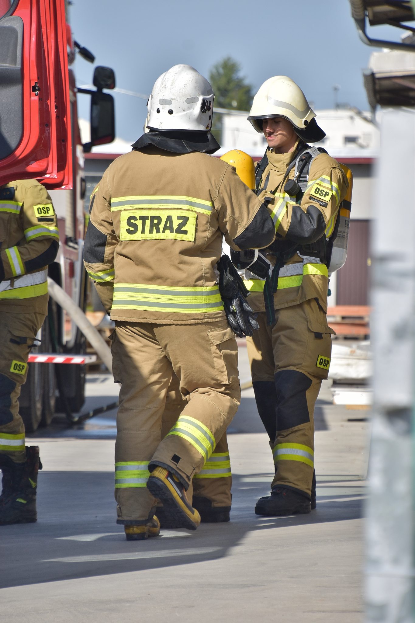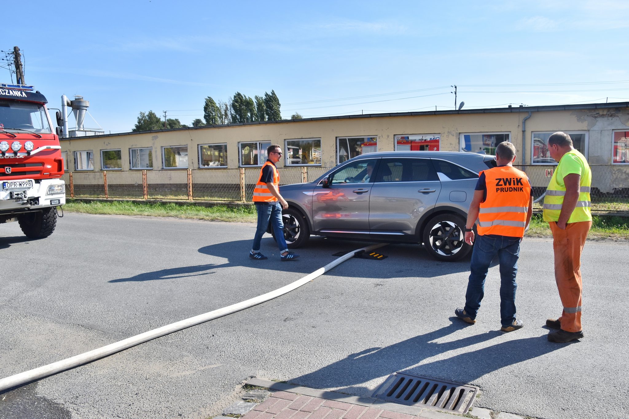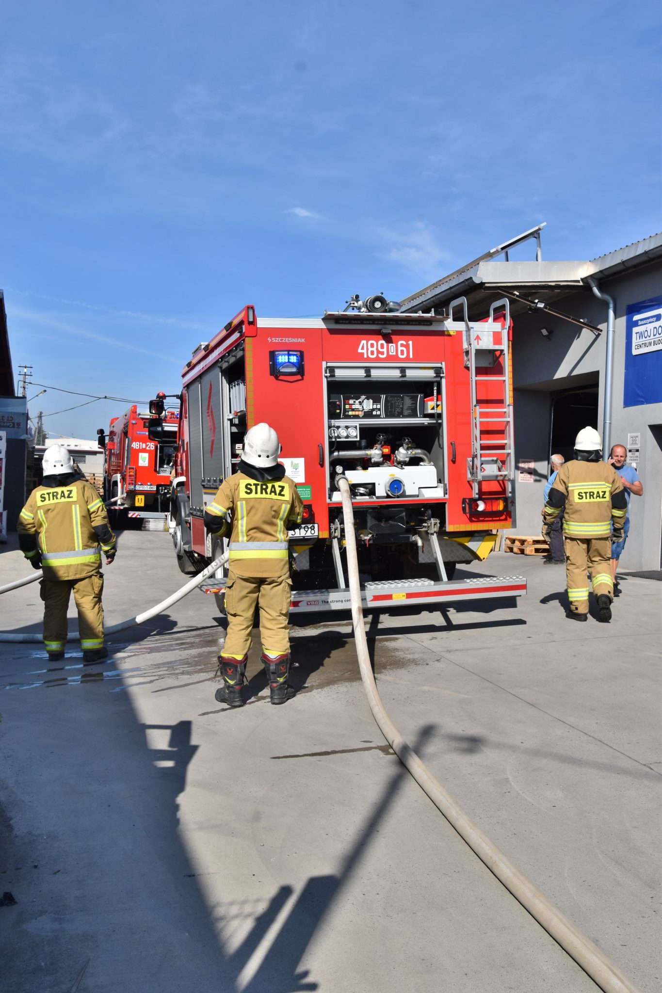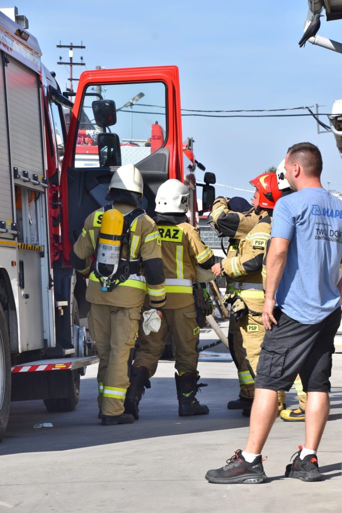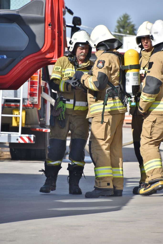 Na miejscu okazało się, że palą się stare przedmioty, w tym regały i opony, składowane między ścianą budynku magazynowego a ogrodzeniem posesji. Ogień nie wdarł się do pomieszczeń, ale ze względu na częściowe zadymienie strażacy używali sprzętu chroniącego drogi oddechowe. Strażaków wsparli pracownicy ZWiK Prudnik (woda z hydrantu). Na miejscu działali strażacy z JRG Prudnik oraz OSP Moszczanka, Łąka Prudnicka i Szybowice.