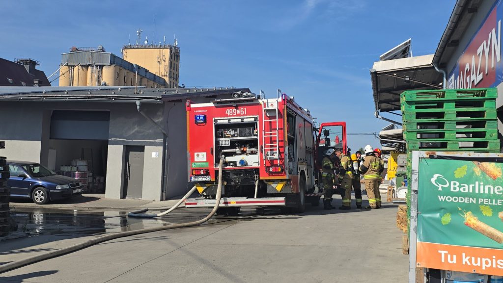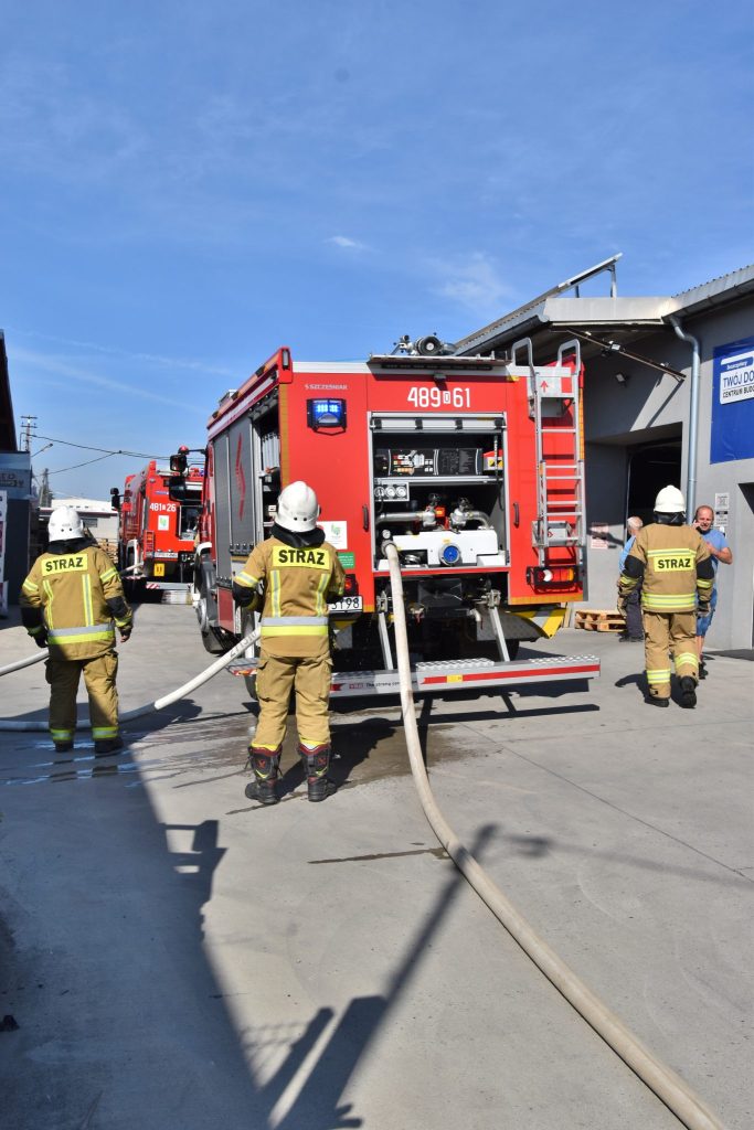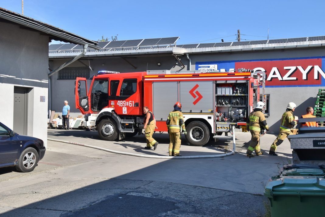 Około godz. 9.30 straż pożarna wezwana została do pożaru w kompleksie handlowo-usługowym przy ul. Prężyńskiej w Prudniku. (28 sierpnia)