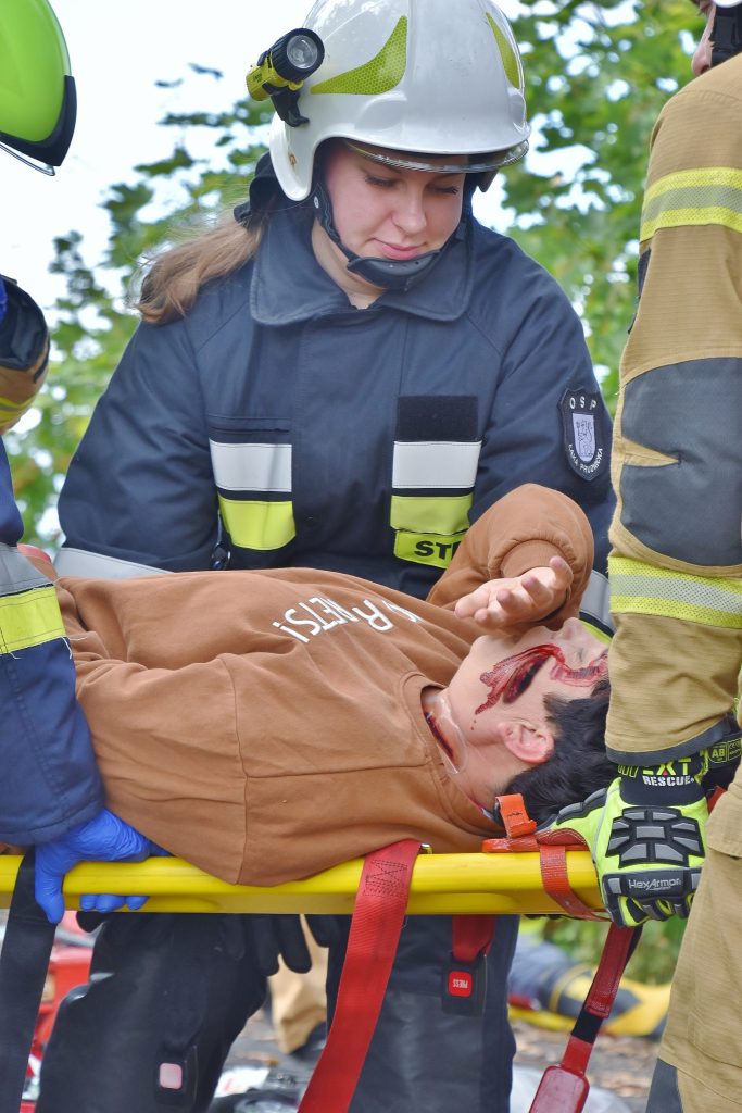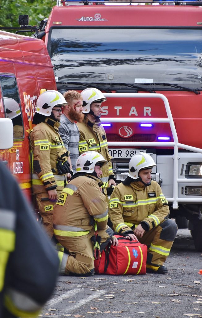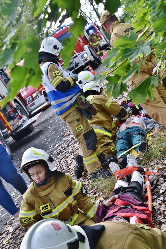Strażacy ćwiczyli działania związane ze zdarzeniem komunikacyjnym, a więc jednym z najczęstszych typów interwencji, w których biorą udział. Strażacy dojechali do wypadku dwóch samochodów osobowych z kilkoma poszkodowanymi osobami. Strażacy musieli dostać się do zakleszczonych rannych, wydobyć ich i udzielić im pomocy. Dodatkowym elementem ćwiczeń było znalezienie w jednym z pojazdów broni palnej. Zabezpieczano również miejsce lądowania medycznego śmigłowca (przylot był symulowany).