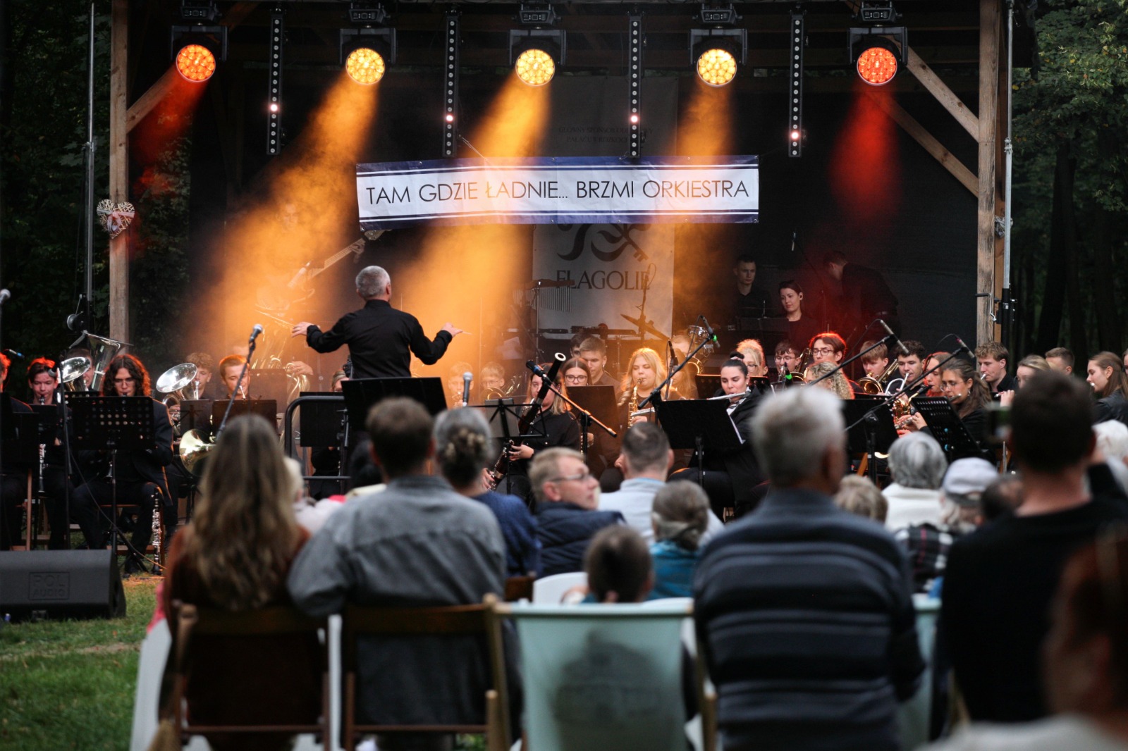 Blisko dwadzieścia utworów zagrała Młodzieżowa Orkiestra Dęta Leśnica podczas koncertu „Tam gdzie ładnie… brzmi orkiestra” w Pałacu Rozkochów. (6 września)