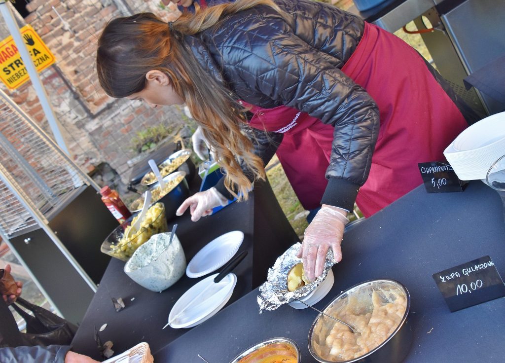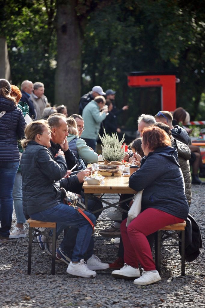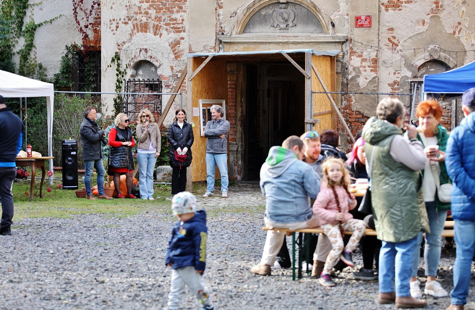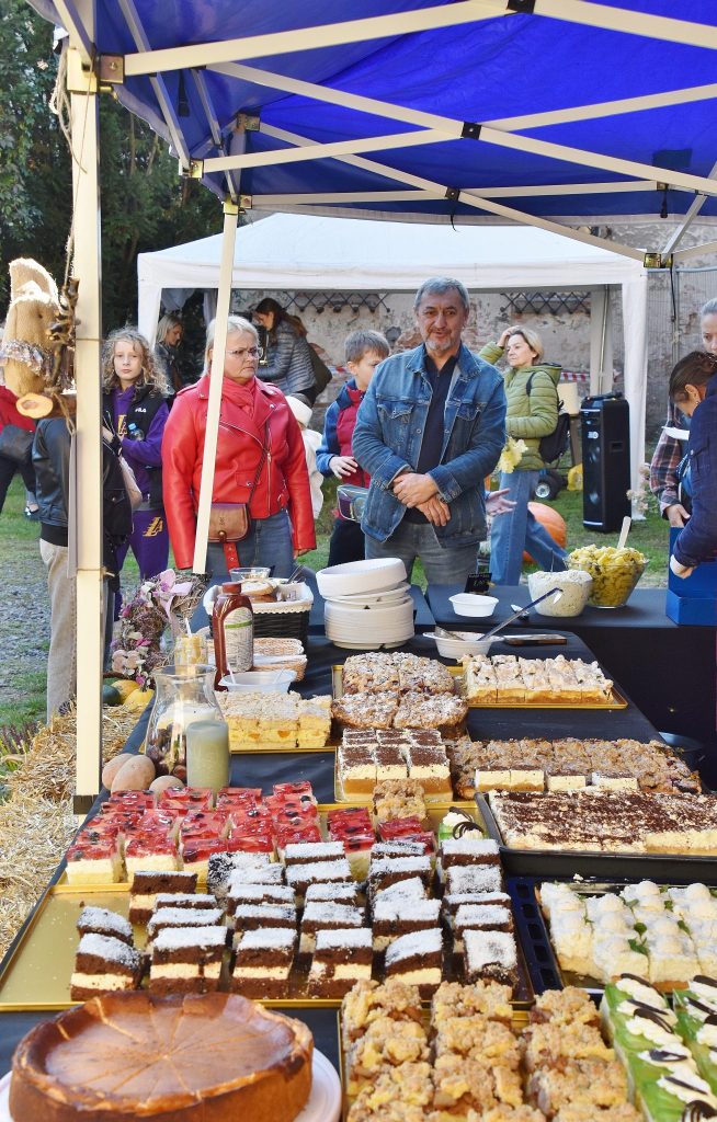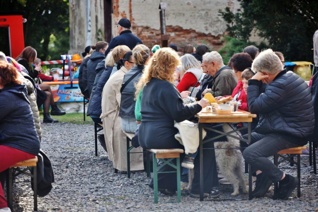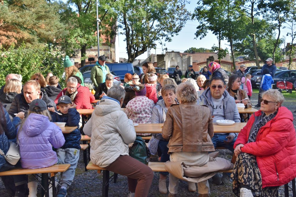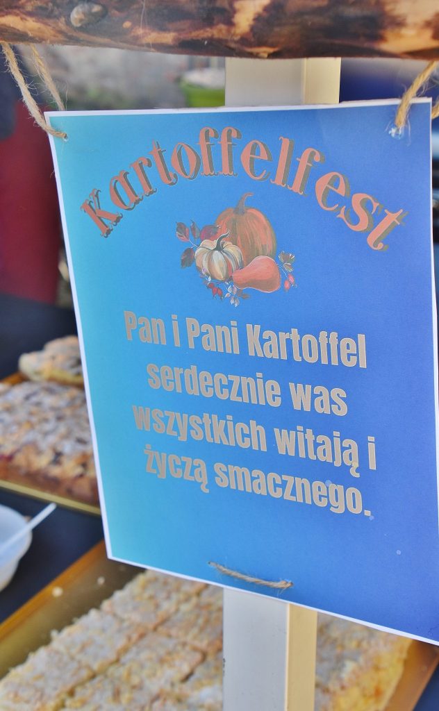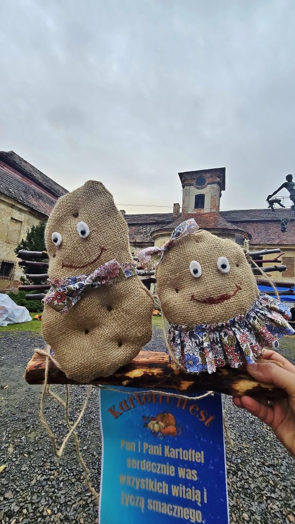 Niemal wszystkie pałacowe wydarzenia „pod chmurką” odbywają się w ogrodzie, na tyłach zabytku, ale utarło się, że Kartoffelfest, już czwarty w historii, organizowany jest na dziedzińcu. Impreza jest przede wszystkim degustacją lokalnych, domowych dań i przekąsek na bazie ziemniaków, dyni i innych kojarzonych z jesienią warzyw. Można tam było zjeść między innymi kartofla pieczonego z gzikiem, zupę dyniową, czy kilka rodzajów sałatki, Do tego dochodziło sporo przeróżnych ciast i smakowe kawy. Było smacznie, a nawet zdrowo, jeśli odpowiednio dobrało się potrawy i nie przesadzało z ilością.