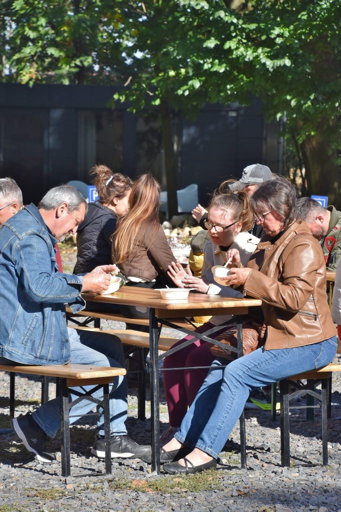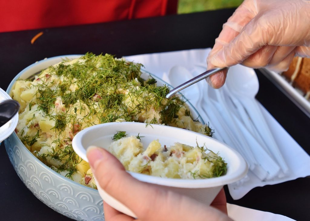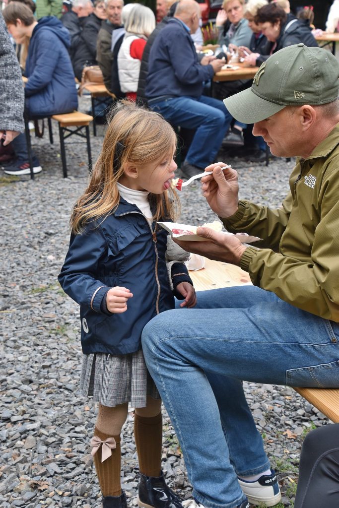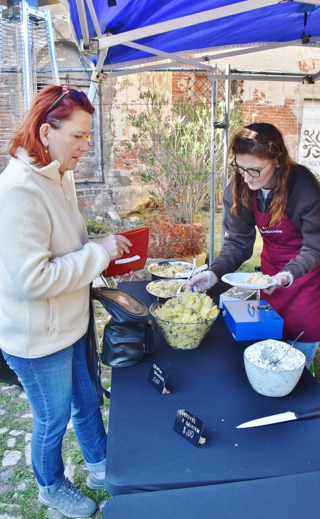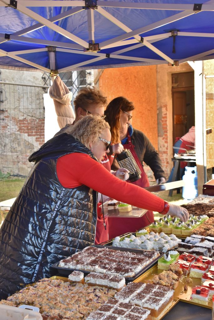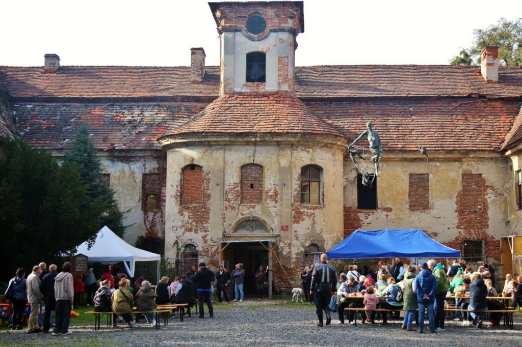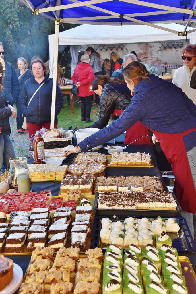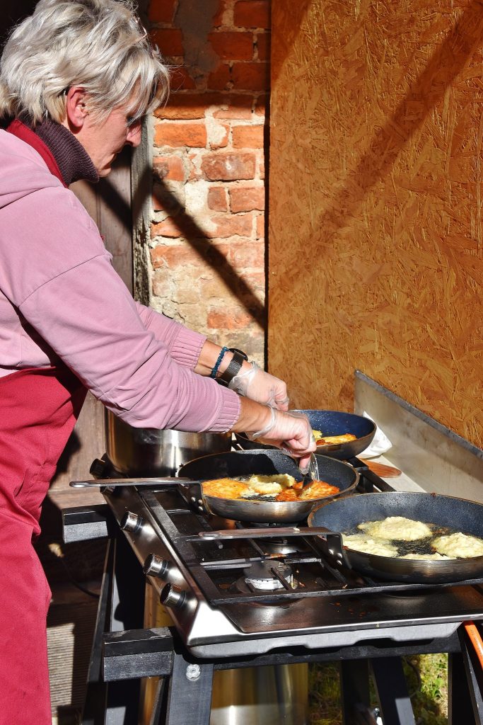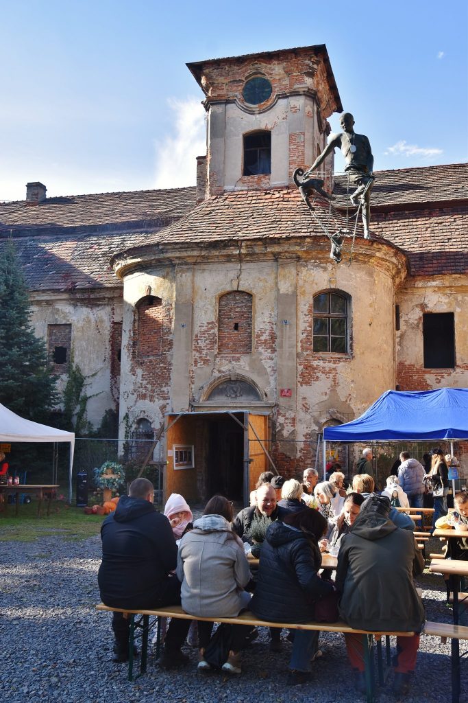 Niemal wszystkie pałacowe wydarzenia „pod chmurką” odbywają się w ogrodzie, na tyłach zabytku, ale utarło się, że Kartoffelfest, już czwarty w historii, organizowany jest na dziedzińcu. Impreza jest przede wszystkim degustacją lokalnych, domowych dań i przekąsek na bazie ziemniaków, dyni i innych kojarzonych z jesienią warzyw. Można tam było zjeść między innymi kartofla pieczonego z gzikiem, zupę dyniową, czy kilka rodzajów sałatki, Do tego dochodziło sporo przeróżnych ciast i smakowe kawy. Było smacznie, a nawet zdrowo, jeśli odpowiednio dobrało się potrawy i nie przesadzało z ilością.