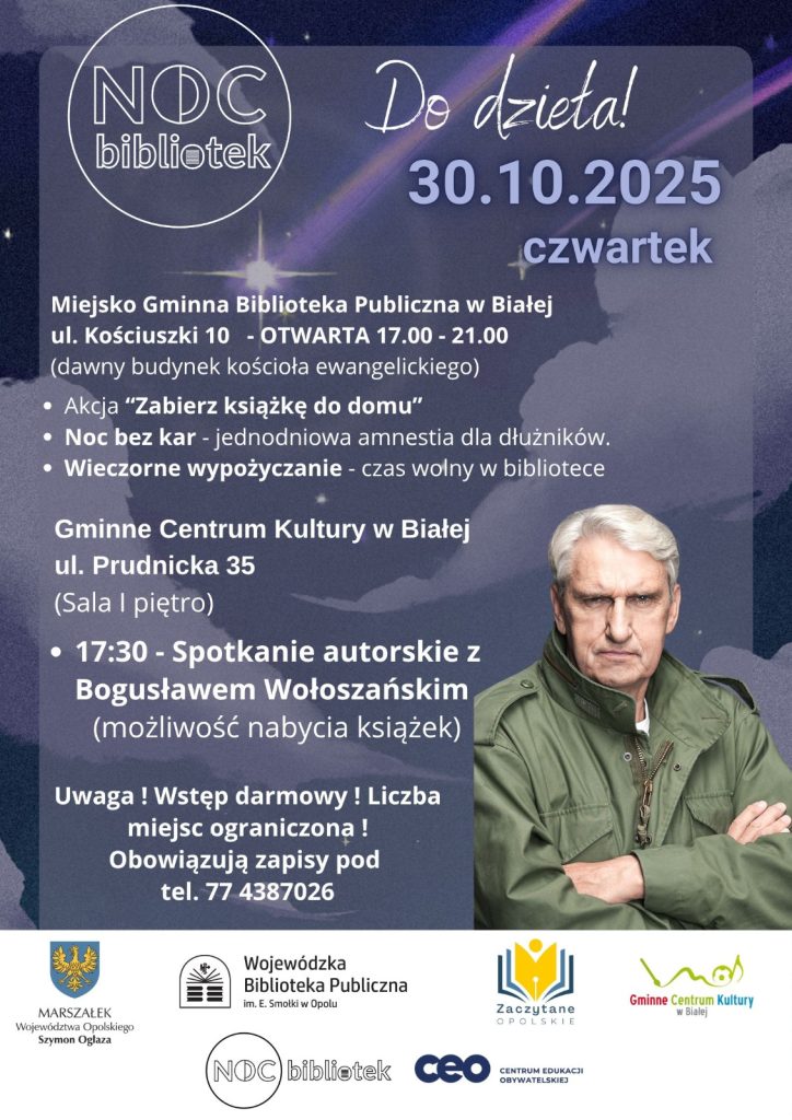 Już 30 października w Białej, podczas Nocy Bibliotek, będzie niecodzienna okazja do spotkania z Bogusławem Wołoszańskim. Udział w wydarzeniu jest bezpłatny, ale konieczna jest rezerwacja miejsc (tel. 77 438 70 26). Spotkanie odbędzie się w ramach Nocy Bibliotek organizowanej przez Miejsko-Gminną Bibliotekę Publiczną w Białej.