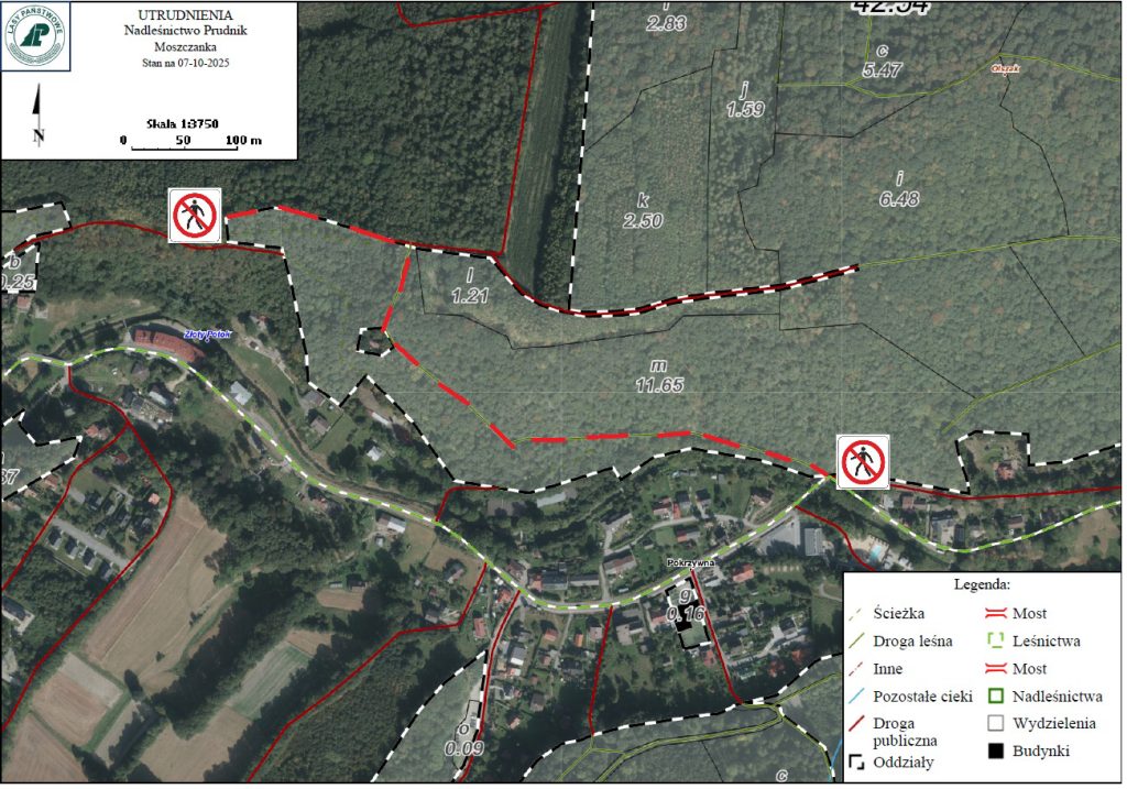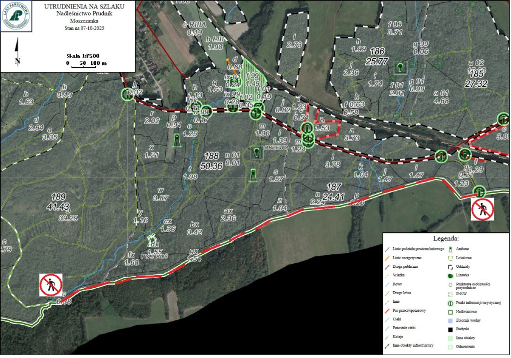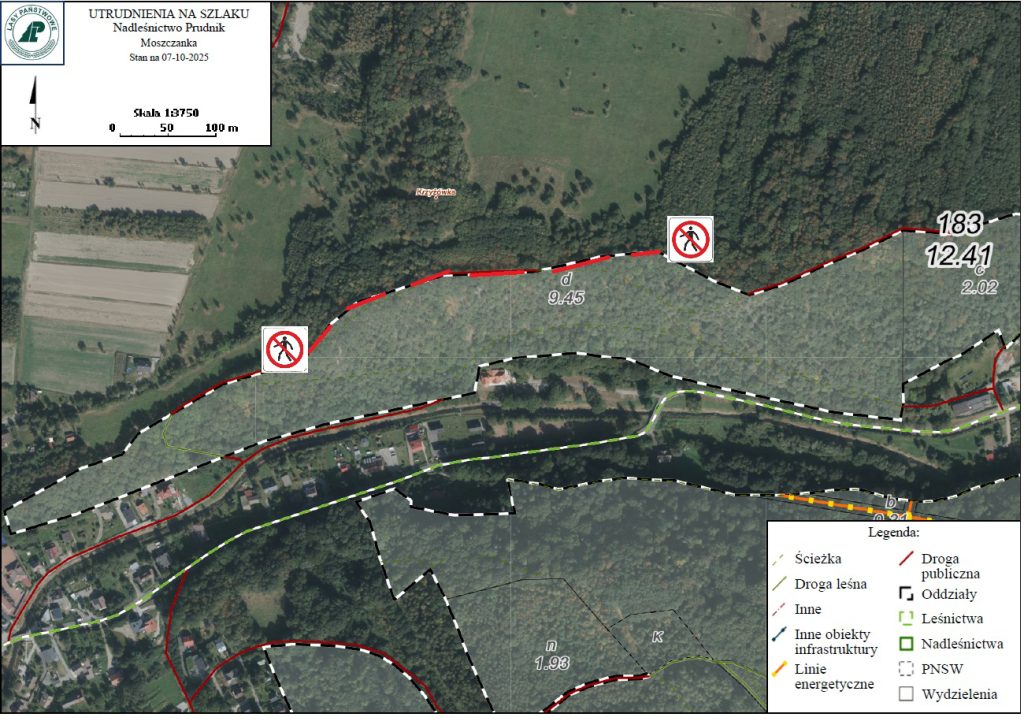 – Drodzy turyści szlak w dalszym ciągu jest dla Was dostępny! Informujemy jedynie o utrudnieniach, które mogą wystąpić. Za utrudnienia przepraszamy, jednak sprawy bezpieczeństwa są dla nas priorytetem. – informuje Nadleśnictwo Prudnik.