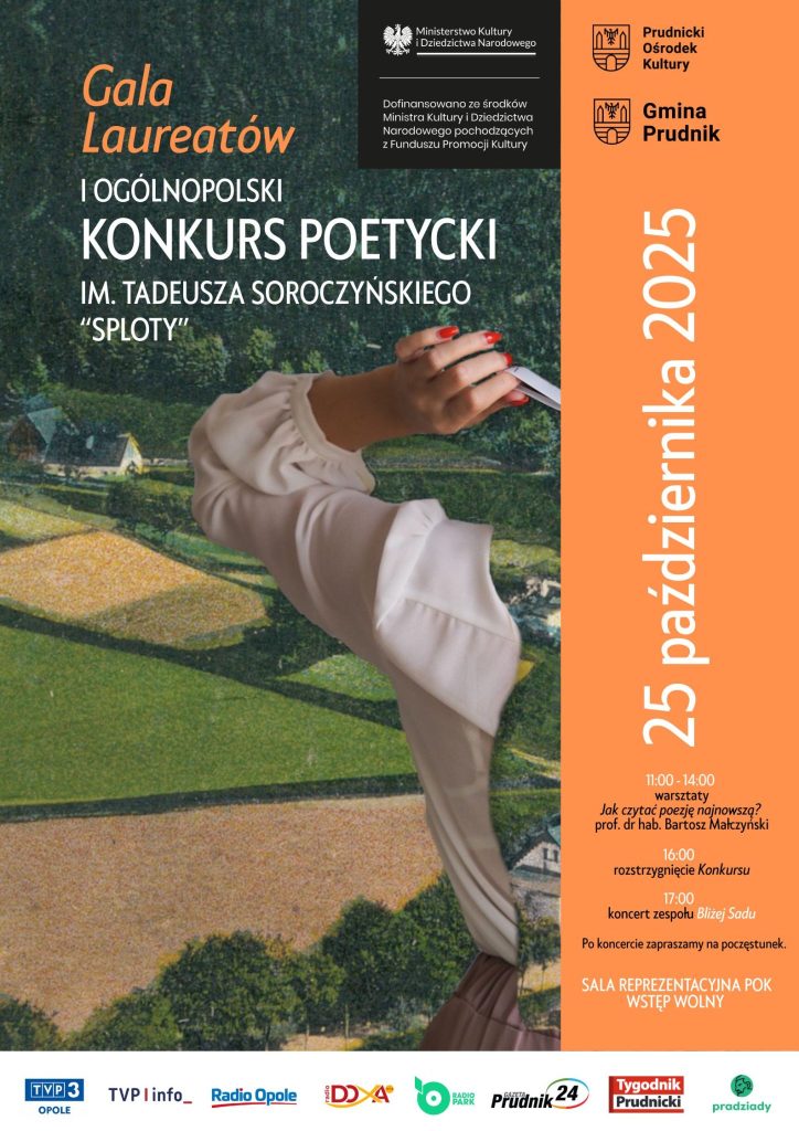 Prudnicki Ośrodek Kultury zaprasza na Galę Laureatów I Ogólnopolskiego Konkursu Poetyckiego im. Tadeusza Soroczyńskiego „Sploty”.